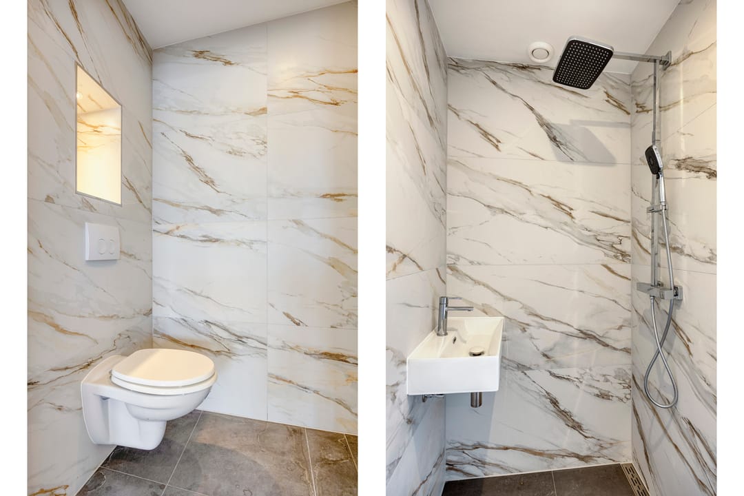 • LED-verlichting, pantry met vaatwasser, inductie kookplaat, combi-oven en koelkast;