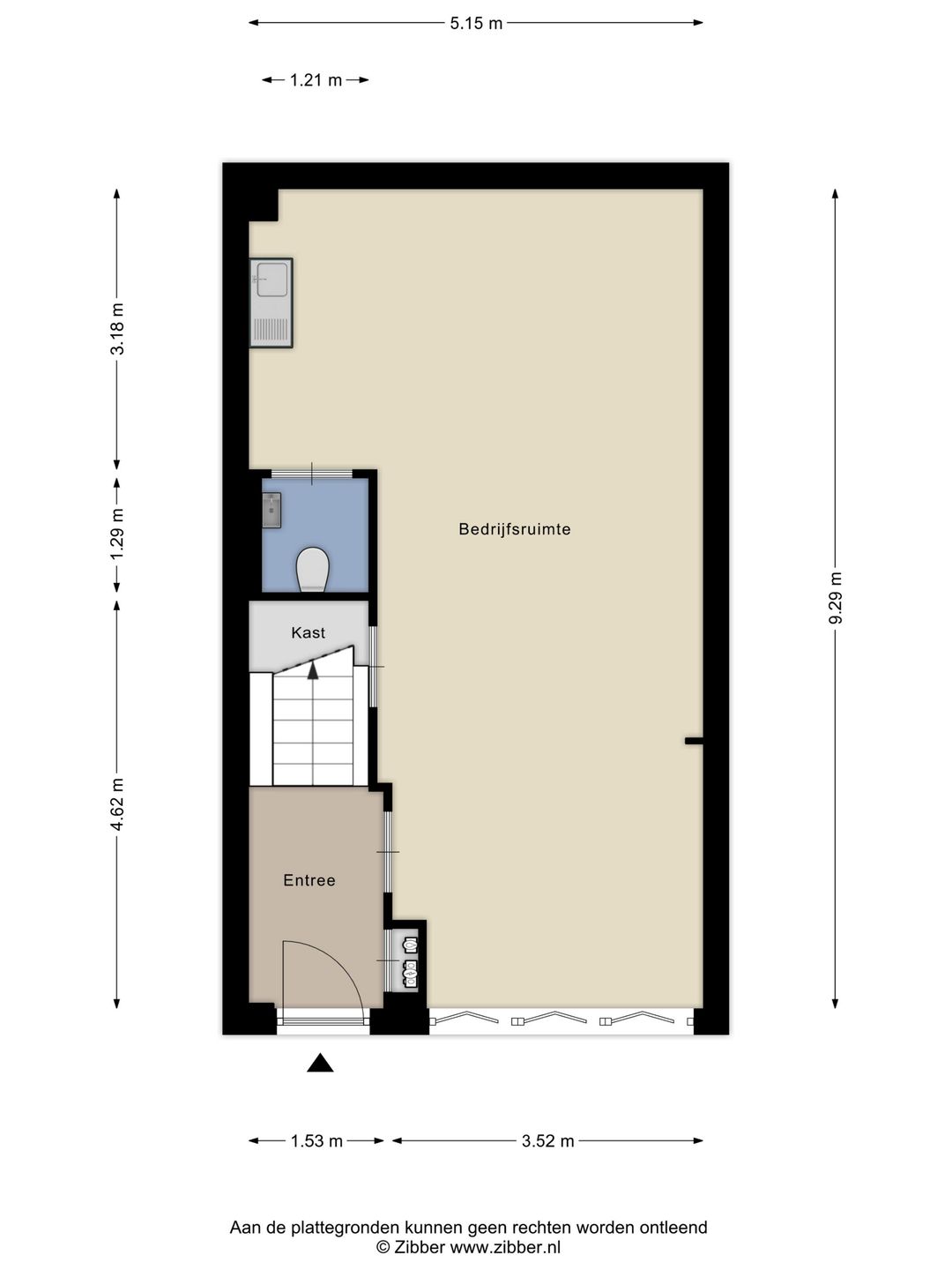 • Begane grond (ca. 46 m²): Bedrijfsruimte met een vrije hoogte van ca. 3,50 m met pantry, toilet en vouwdeur. Bedrijven tot en met categorie 2 toegestaan;