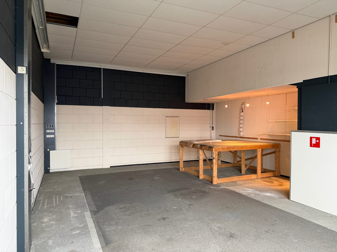 De bedrijfsunit bestaat uit een royale werkplaats met systeemplafond en heeft een overheaddeur aan de voorzijde.