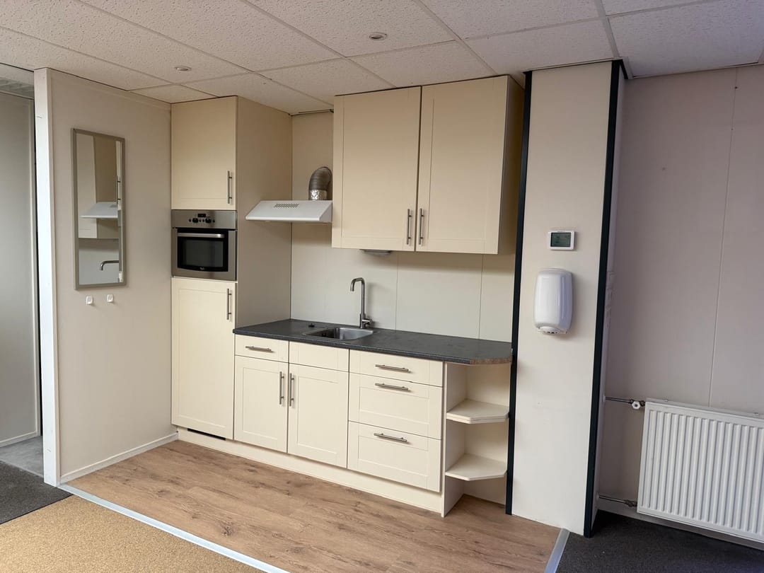 Op de eerste verdieping vindt u een royale werk-/vergaderruimte, een open keuken, een douche en een toilet.