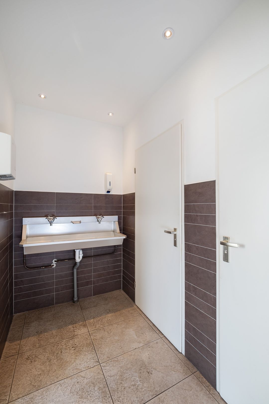 Binnen ervaar je meteen het comfort van moderne voorzieningen. De kantoren zijn uitgerust met plavuizen vloeren met vloerverwarming, waardoor koude voeten verleden tijd zijn. Maar dat is nog niet alles: verspreid door het pand zijn maar liefst 7 airco-units geïnstalleerd — 3 in de kantoren en 4 in de productiehal — zodat je in elk seizoen geniet van een aangenaam binnenklimaat.