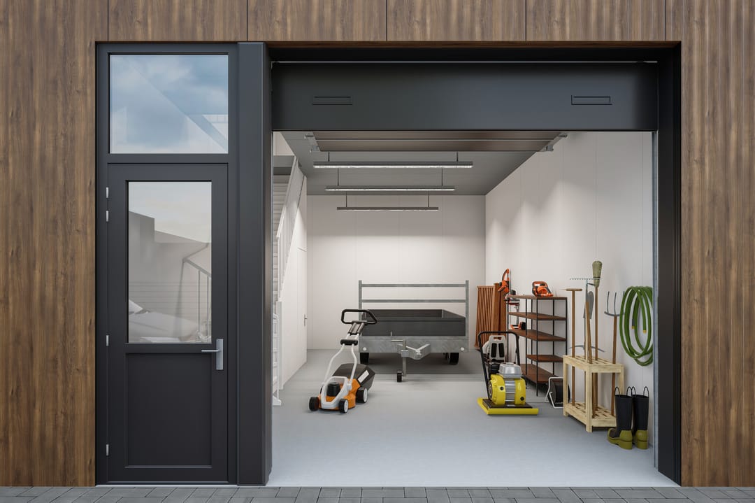 - Een roldeur met elektromotor.