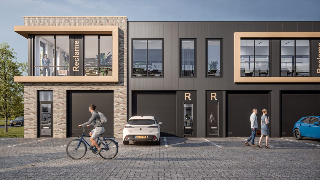 De bedrijfsruimte type 08 is voorzien van een elektrisch bedienbare overheaddeur, toegang wordt verkregen door de glazen loopdeur. Daarnaast is de ruimte luxueus afgewerkt met grote raampartijen. De uitstraling is luxe maar ook praktisch. De royale opzet van de gebouwen zorgt voor een ruimtelijke uitstraling.