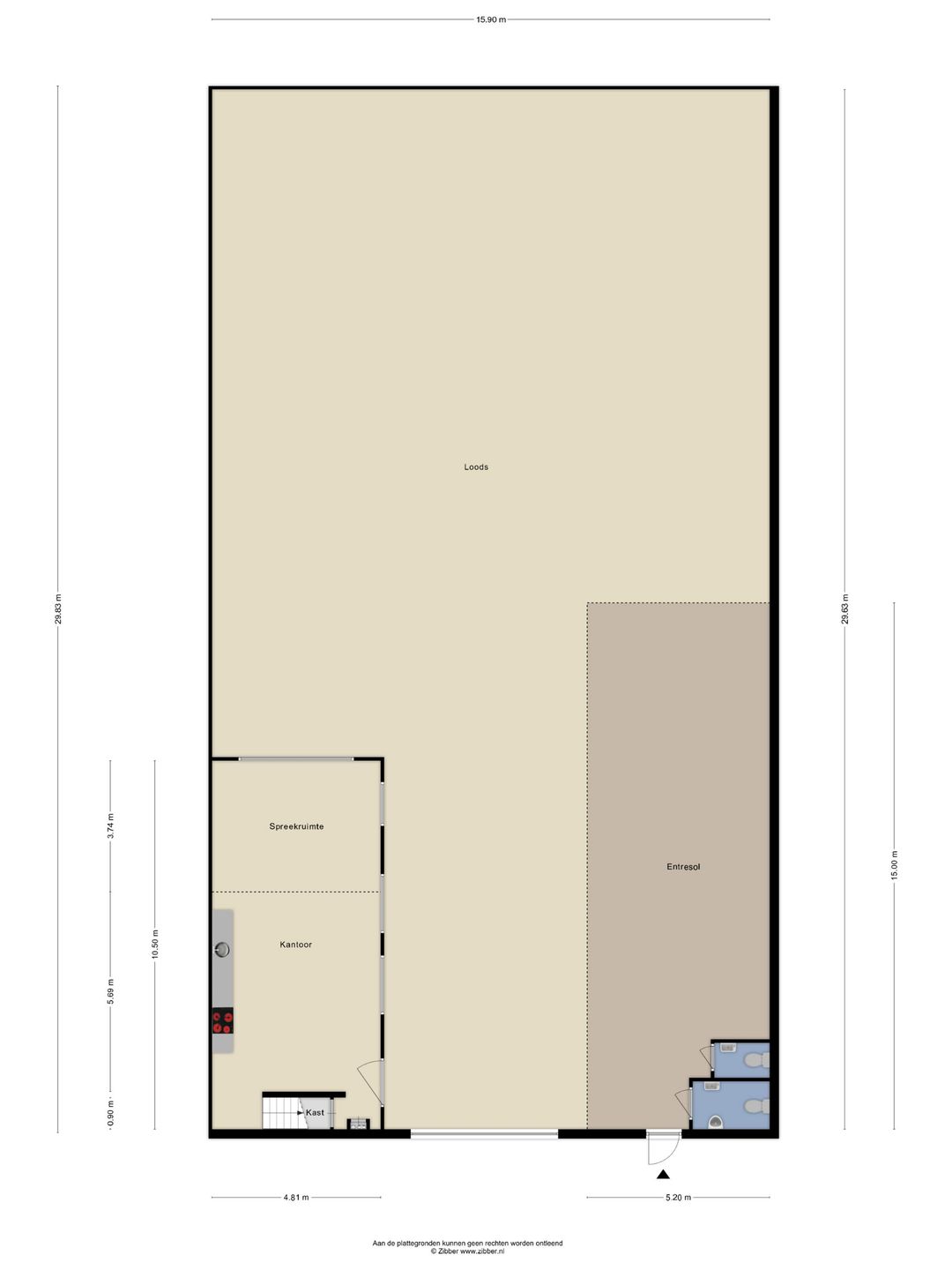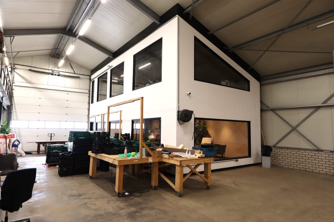 Gebruiksoppervlakte (begane grond): Ca. 470m² en inpandig 101m² kantoorruimte.