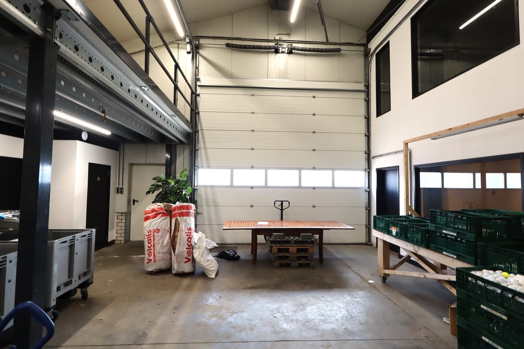 - Overheaddeur van 4.30m hoog en 4.85m breedte.