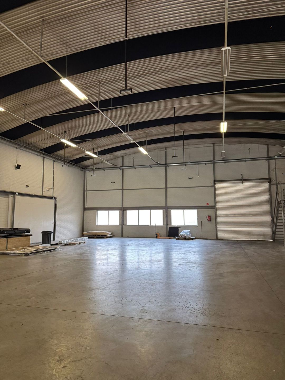- Vrije hoogte: ca. 6,40 meter – ideaal voor stellingen, volumineuze opslag of productie