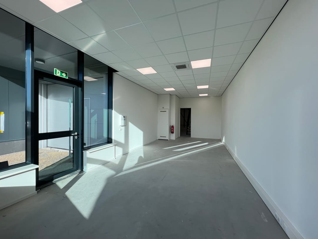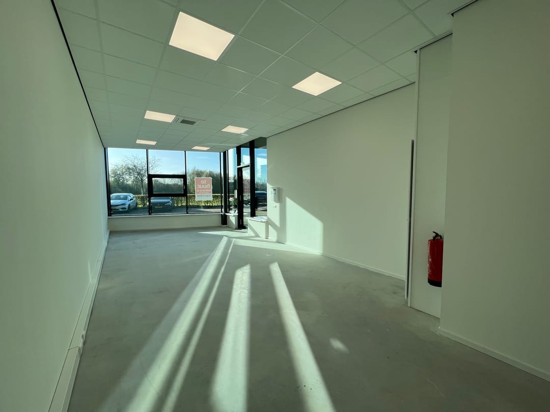 De bedrijfs-/kantoorruimte is volledig uitgevoerd in twee bouwlagen. Op zowel de begane grond als op de verdieping is aan de voorzijde een kantoorruimte gerealiseerd. De ruimte achter de kantoren is multifunctioneel van opzet en kan worden ingericht als leslokaal, bedrijfsruimte, showroom of vergaderruimte. Door middel van de ramen in de zijgevel, alsmede een extra entree in de zijgevel beschikt de bedrijfs-/kantoorruimte over extra daglichttoetreding.