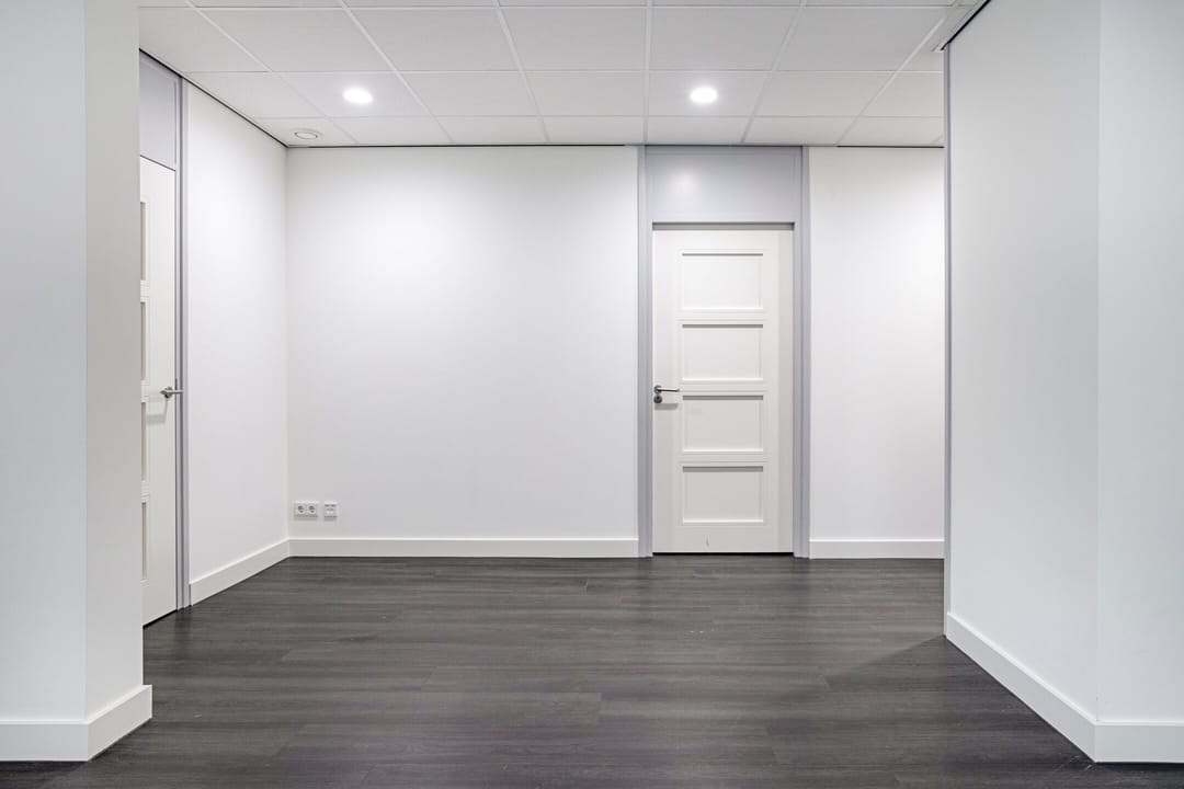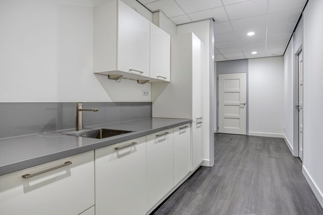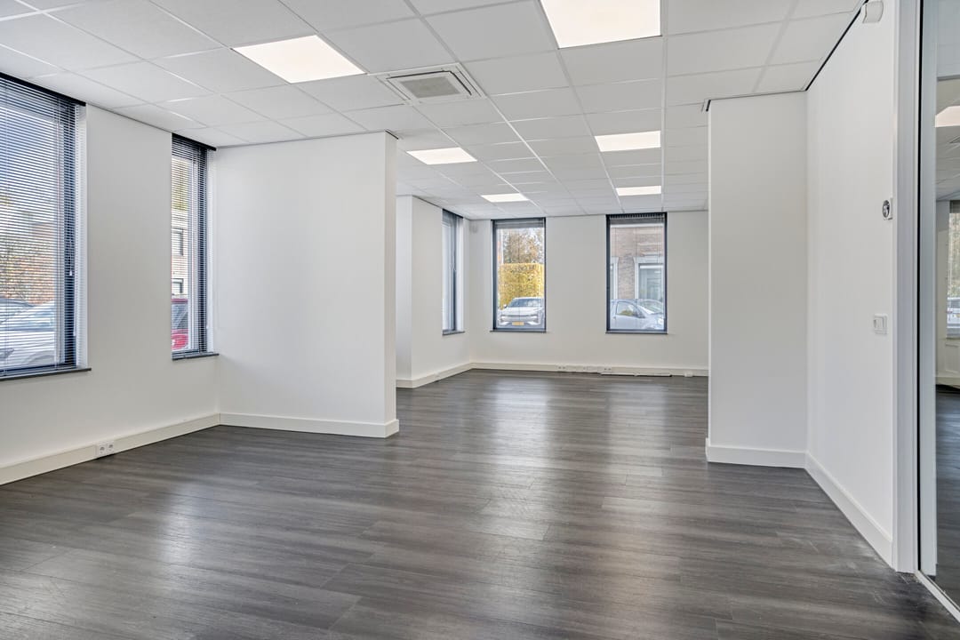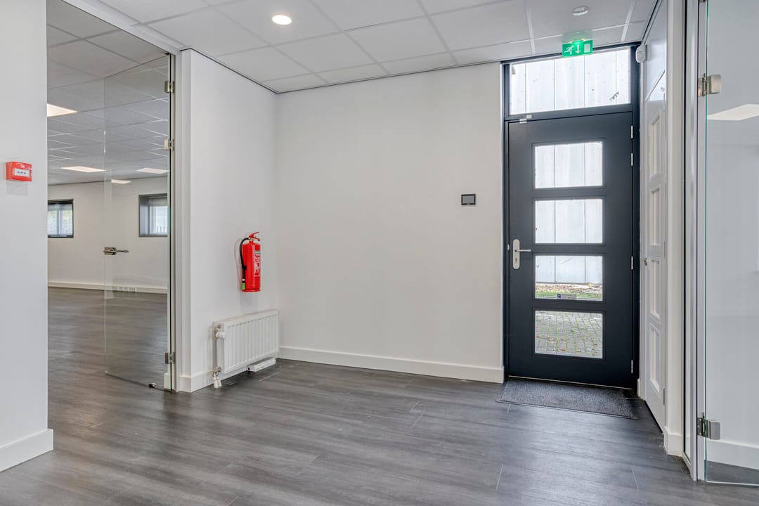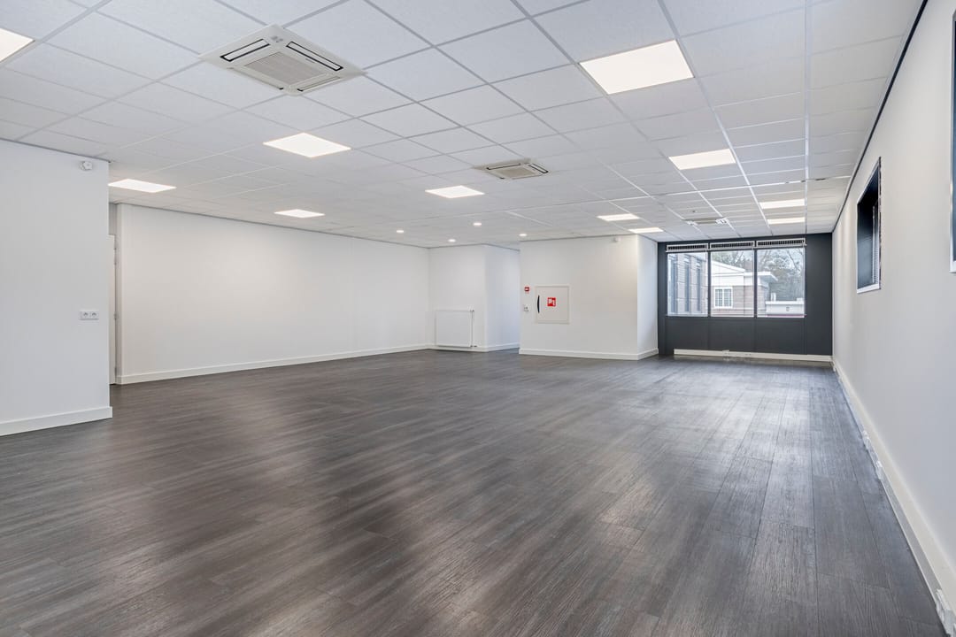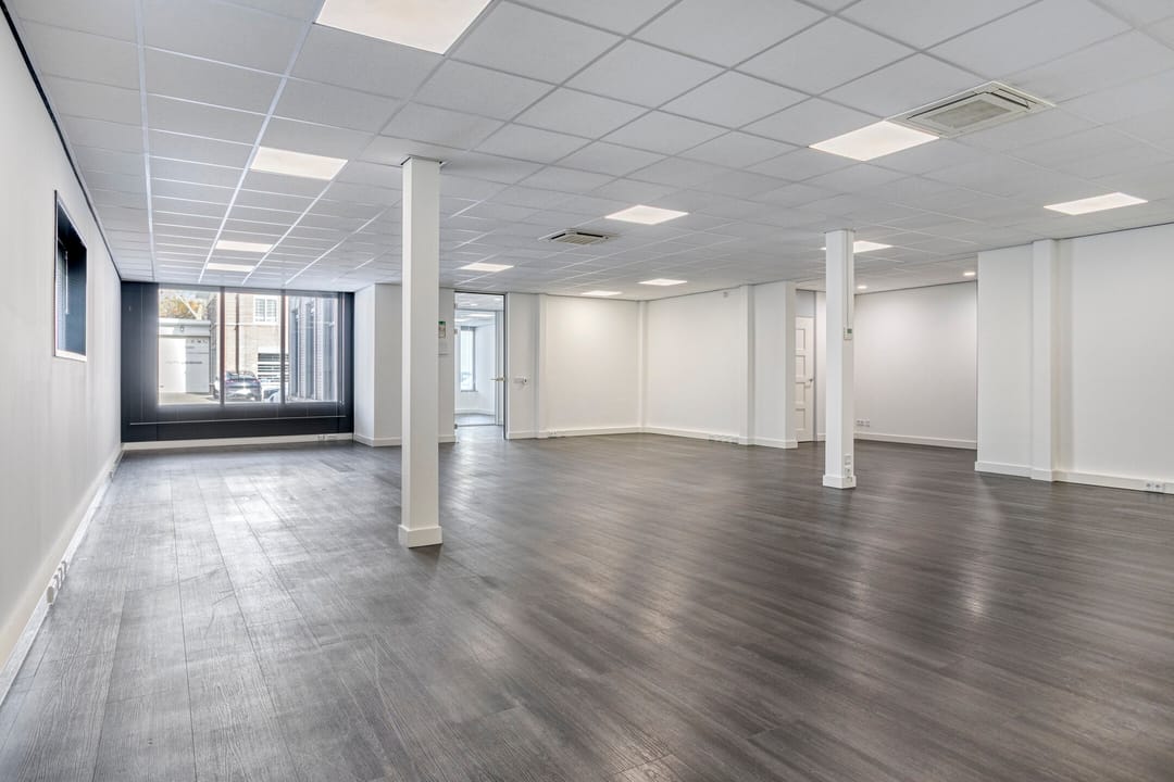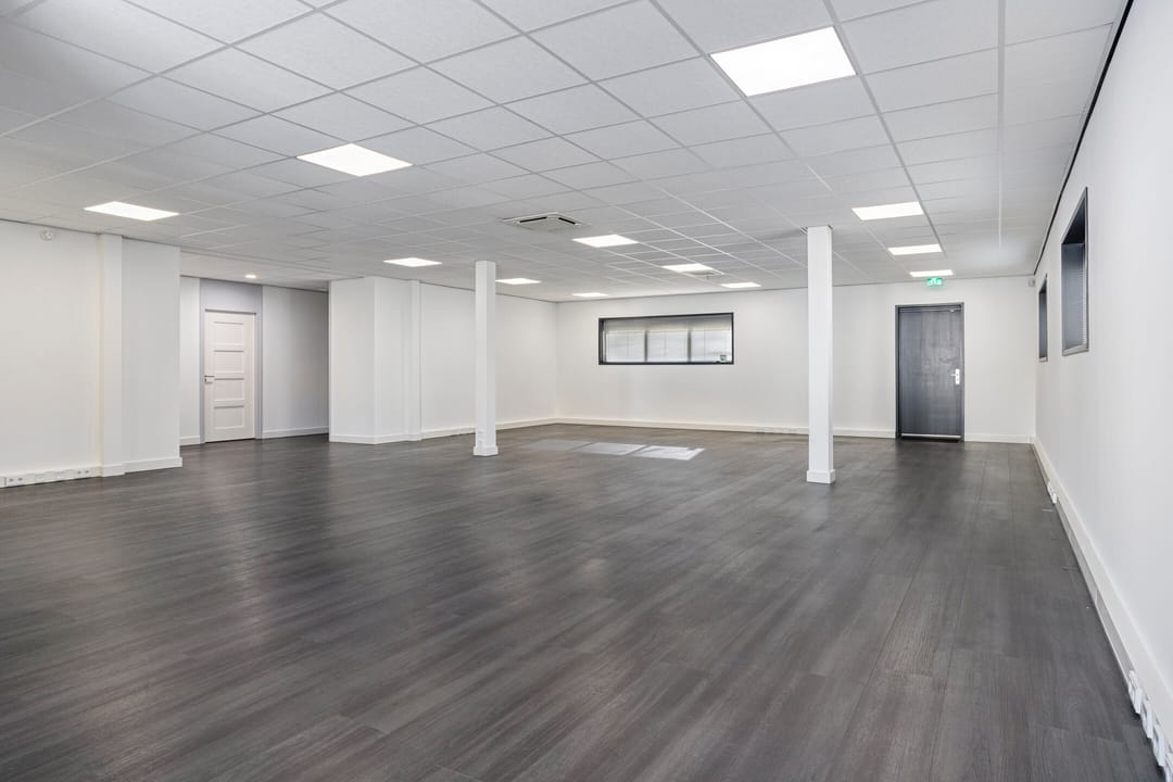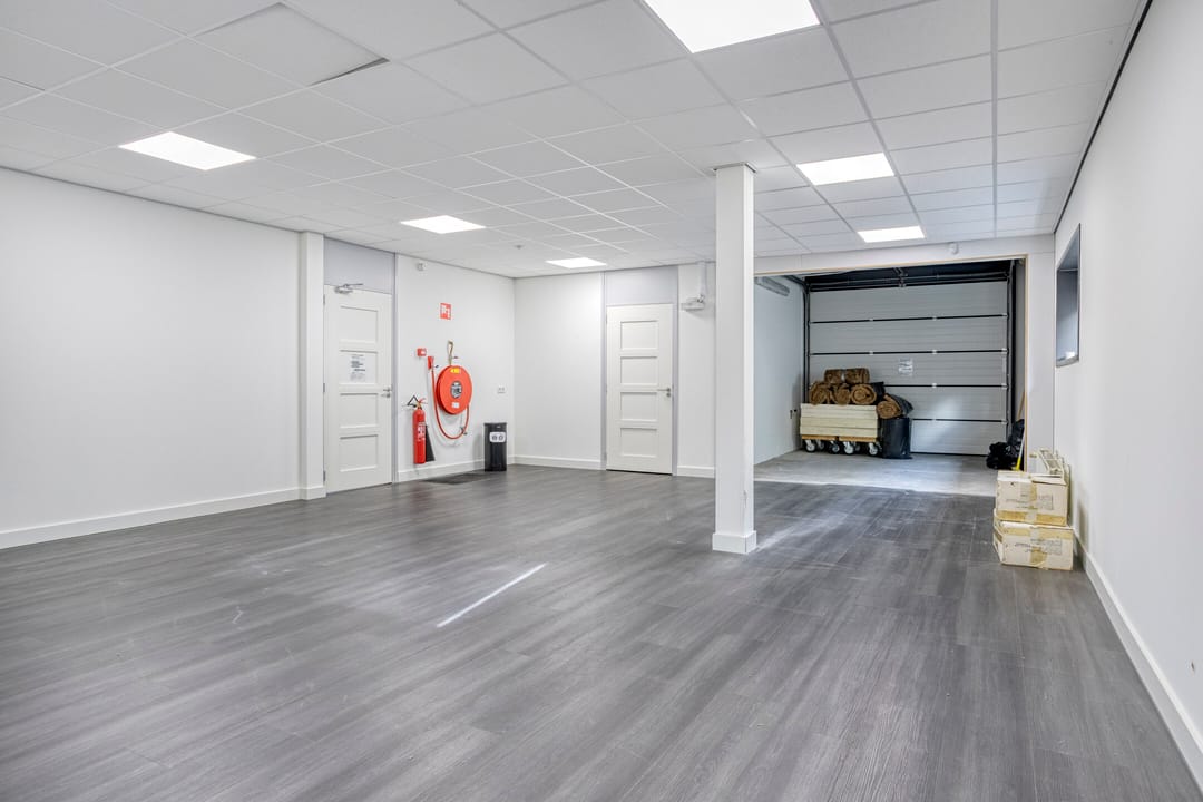 - Verlaagde systeemplafonds in het kantoordeel, magazijnruimte gedeeltelijk;