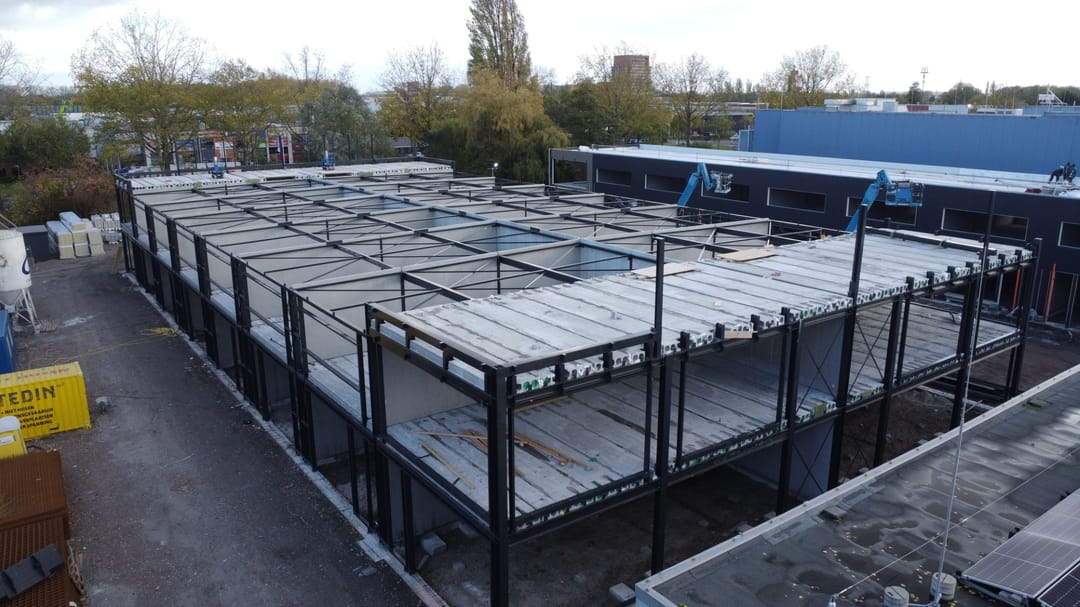 - Stoere uitstraling door donker sandwichpaneel en metselwerk