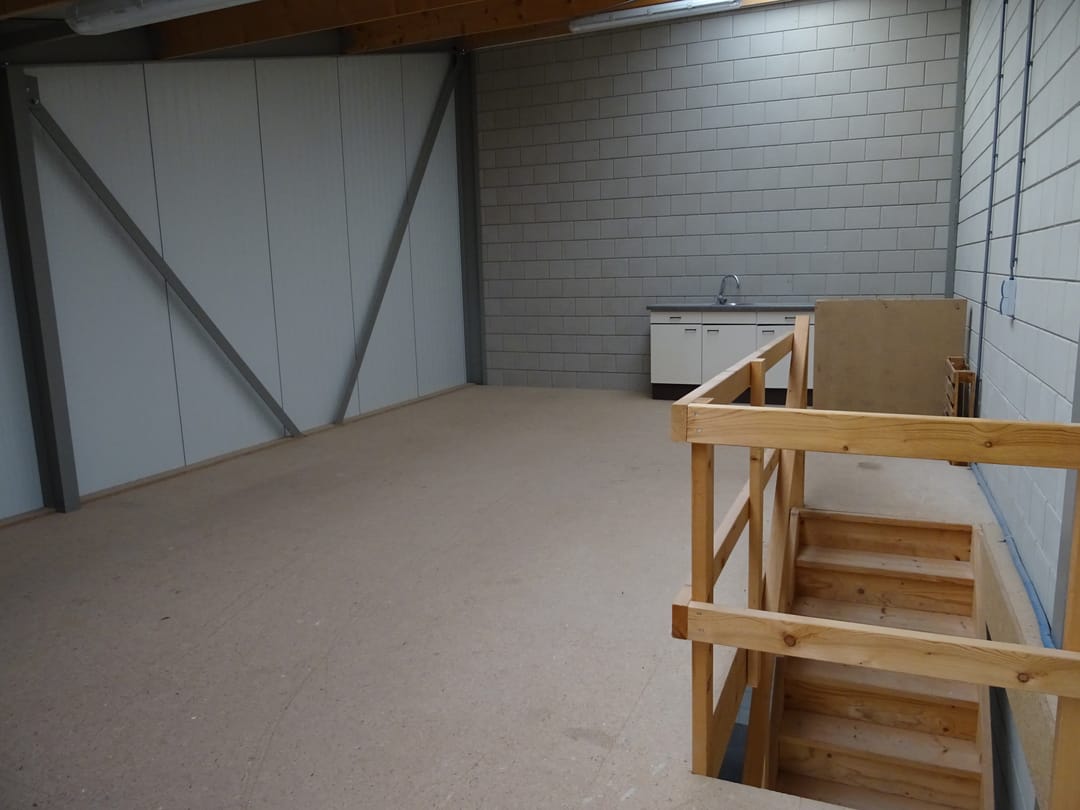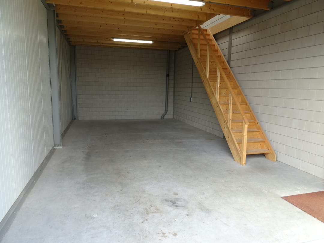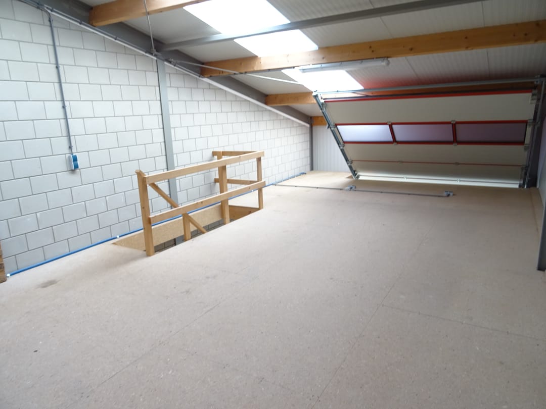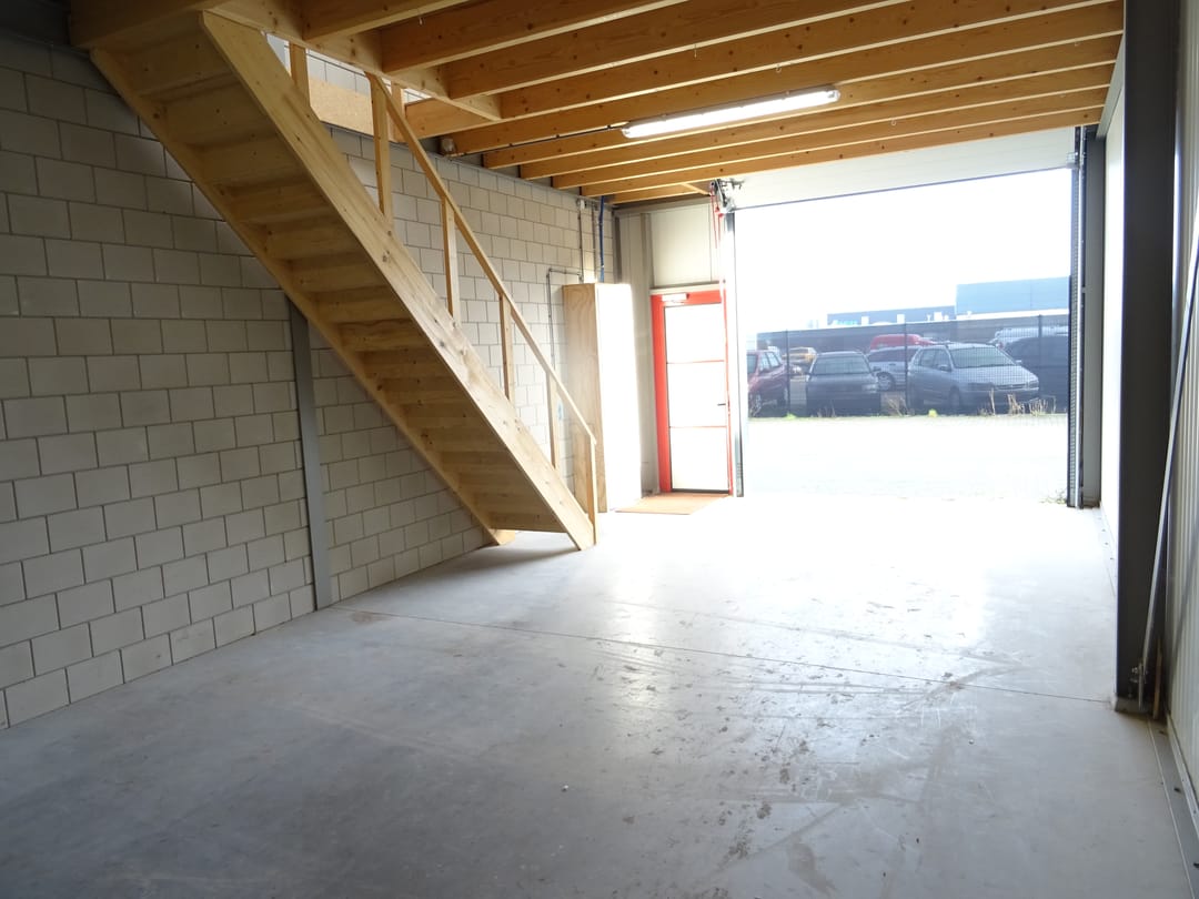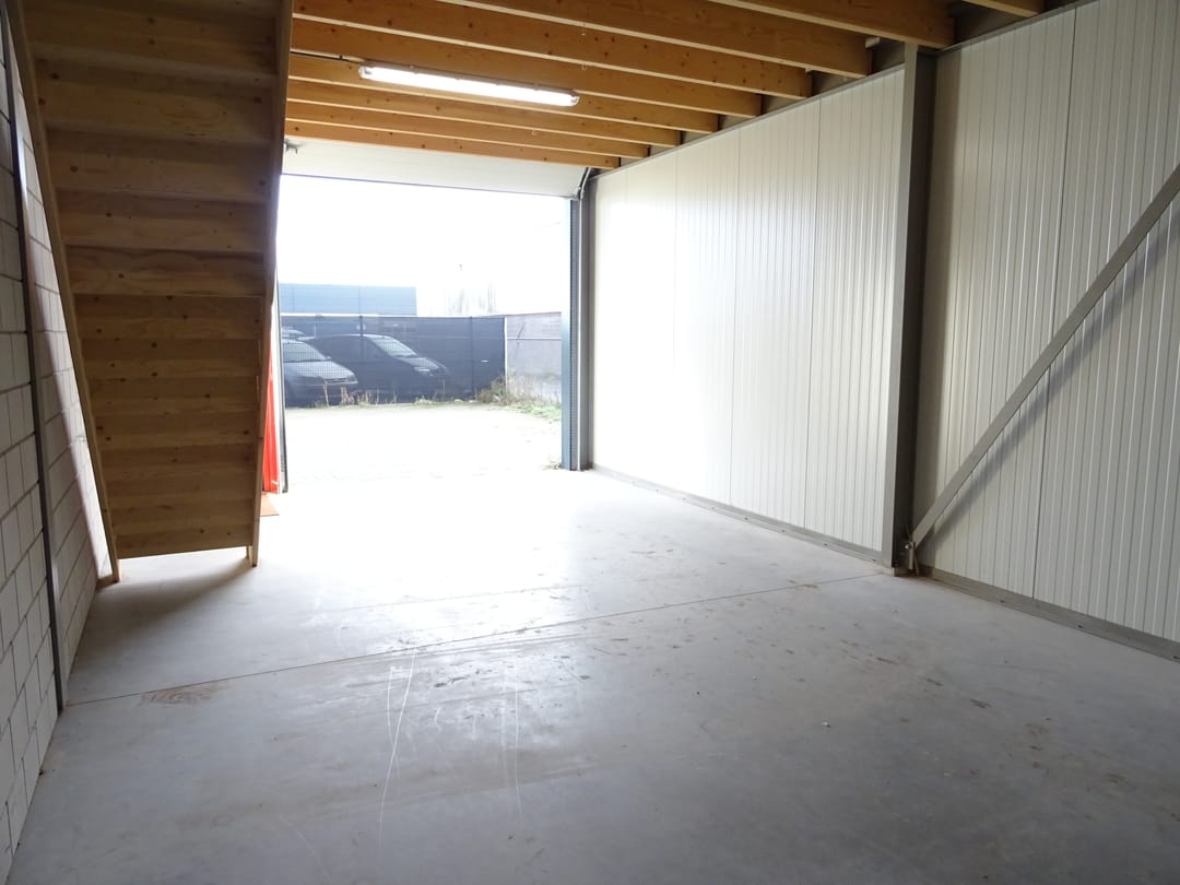 Te huur: kleine bedrijfs-/opslagunit van 50 m2 + verdiepingsvloer van 50 m2.