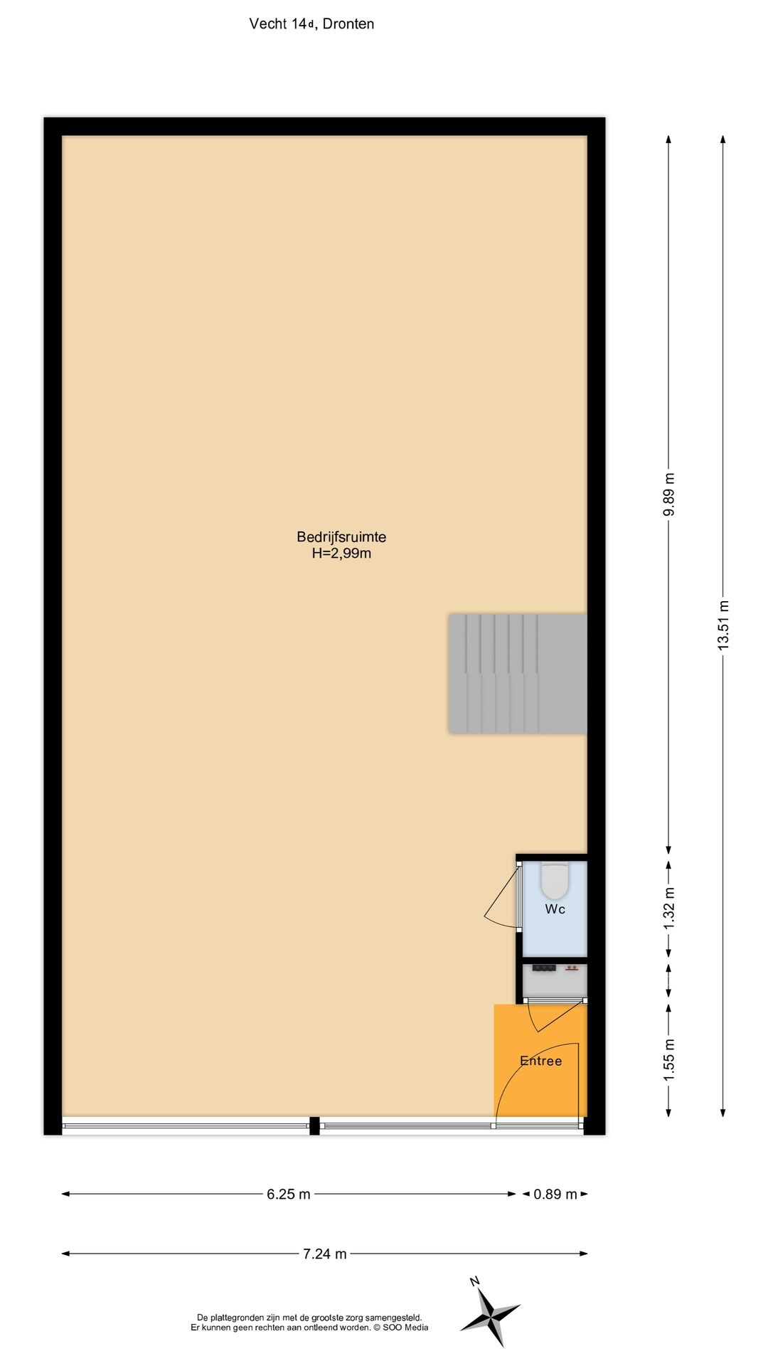 - Afmetingen ca. 7,25 meter breed en ca. 13,50 meter diep