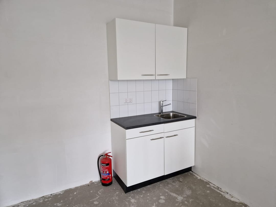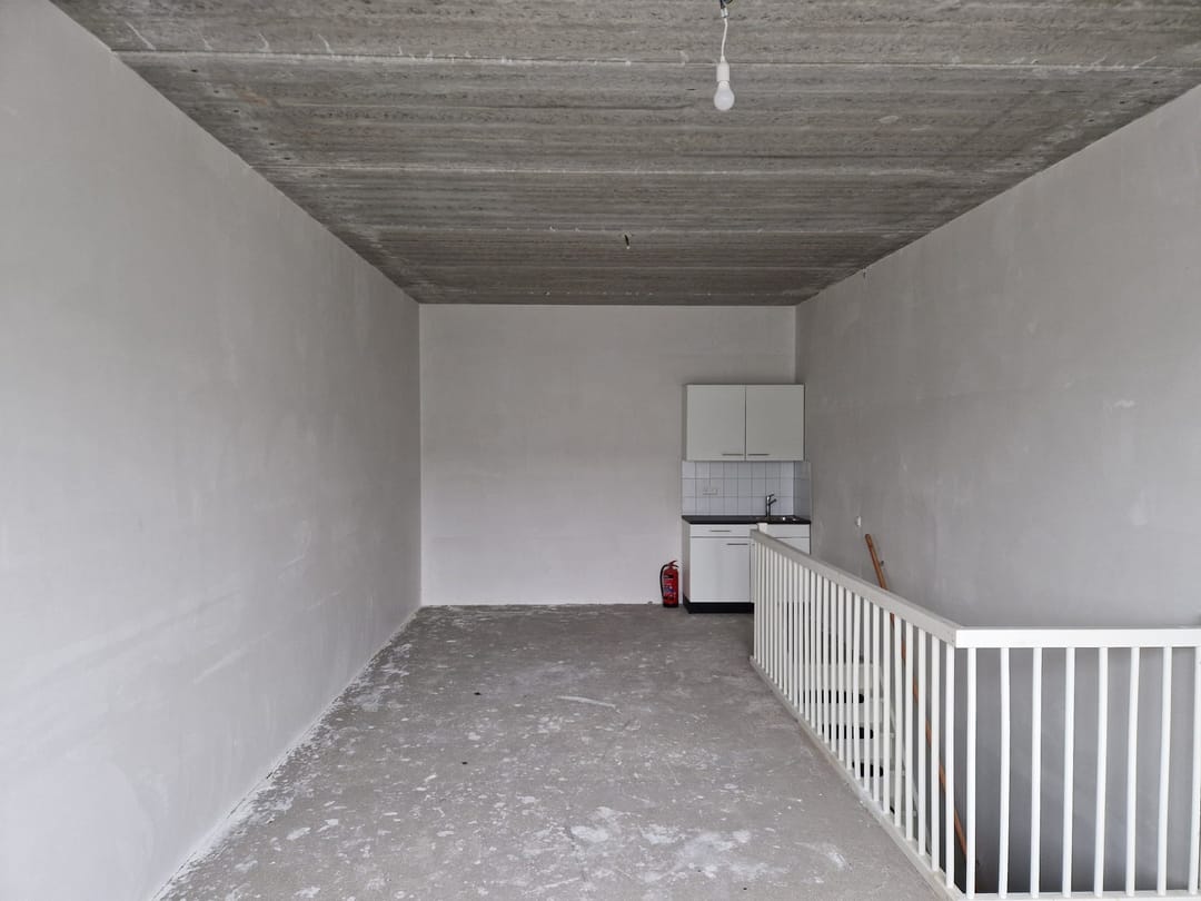 Unit 6C afgewerkt met beneden toilet, wastafel, stopcontacten, lichtschakelaar. Boven gestuct, keukenblok, stopcontacten, lichtschakelaar.