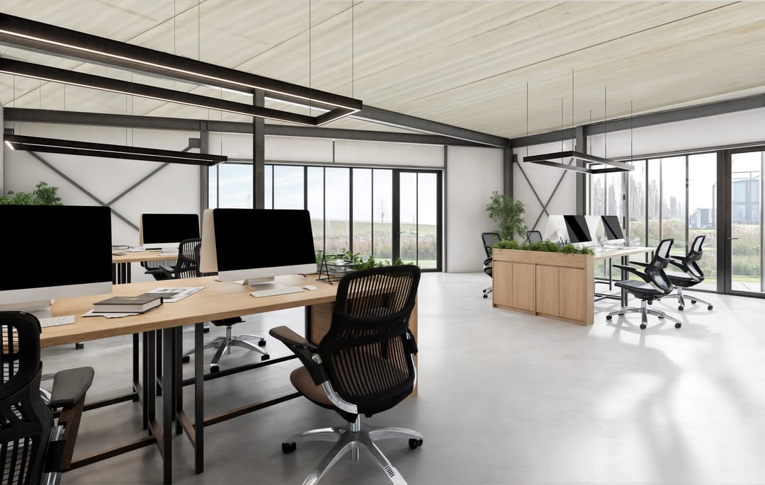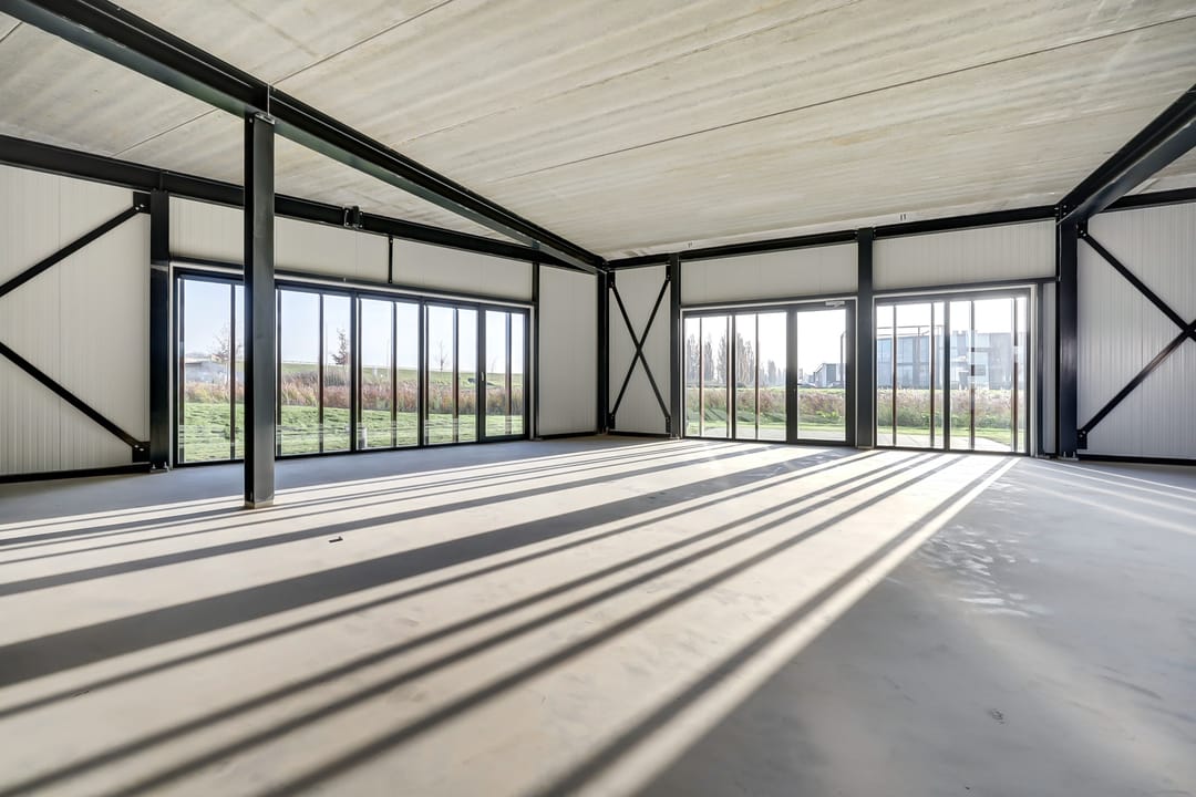 Onze units worden standaard uitgevoerd met vloerverwarming, een electrisch bedienbare overheaddeur en een meterkast, voorzien van 220 en 380 volt en een wateraansluiting.