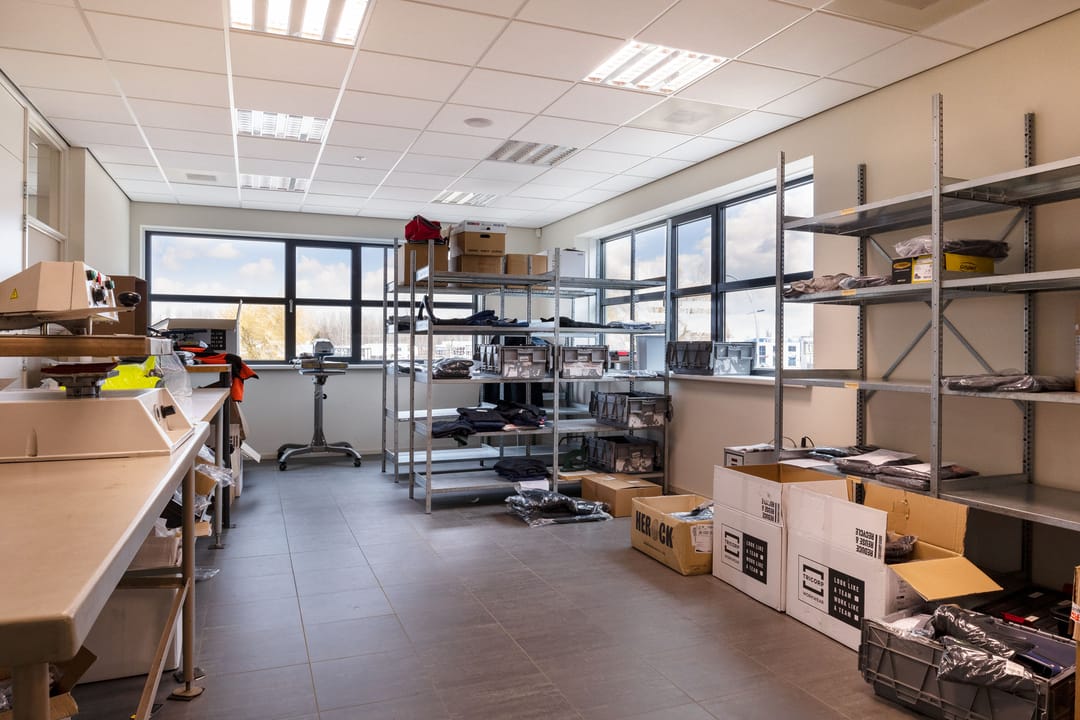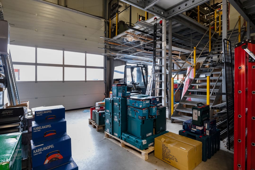 De bedrijfsruimte is uitgevoerd met een elektrisch bedienbare roldeur, aan de voorkant van het gebouw. Daarnaast is de begane grond volledig voorzien van vloerverwarming en zijn de kantoren op de begane grond en de verdieping voorzien van vloerkoeling. De entresolvloer is naar wens deels of geheel weg te halen.