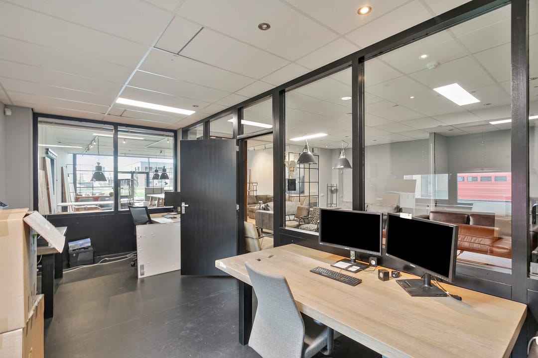 Het betreft een bedrijfsruimte met showroom en nette, recent vernieuwde kantoorruimte gelegen op de begane grond en eerste verdieping. De totale vloeroppervlakte van het object is ca. 810 m² v.v.o.. Op de begane grond bevindt zich aan de voorzijde van het pand een showroom (met glazen pui) inclusief kantoorruimte en de achterzijde is op dit moment ingericht als opslagruimte. De laatst genoemde ruimte is voorzien van een glazen pui, maar beschikt ook nog over een elektrische overheaddeur. Op de eerste verdieping bevinden zich diverse kantoorruimtes, een vergaderzaal, een (kantine)ruimte voorzien van bar en keuken, sanitair en is aan de achterzijde wederom showroom en opslagruimte aanwezig. De kantoorruimte is van alle gemakken voorzien en beschikt onder andere over airconditioning, voldoende stroompunten en verwarming. Het pand is zowel aan de voorzijde als achterzijde te betreden en beschikt over een glazen pui aan beide zijden welke zorgt voor veel lichtinval. Aan zowel de voorzijde als achterzijde zijn in totaal 12 parkeerplaatsen gelegen. De oppervlaktes van het complex zijn verdeeld als volgt: