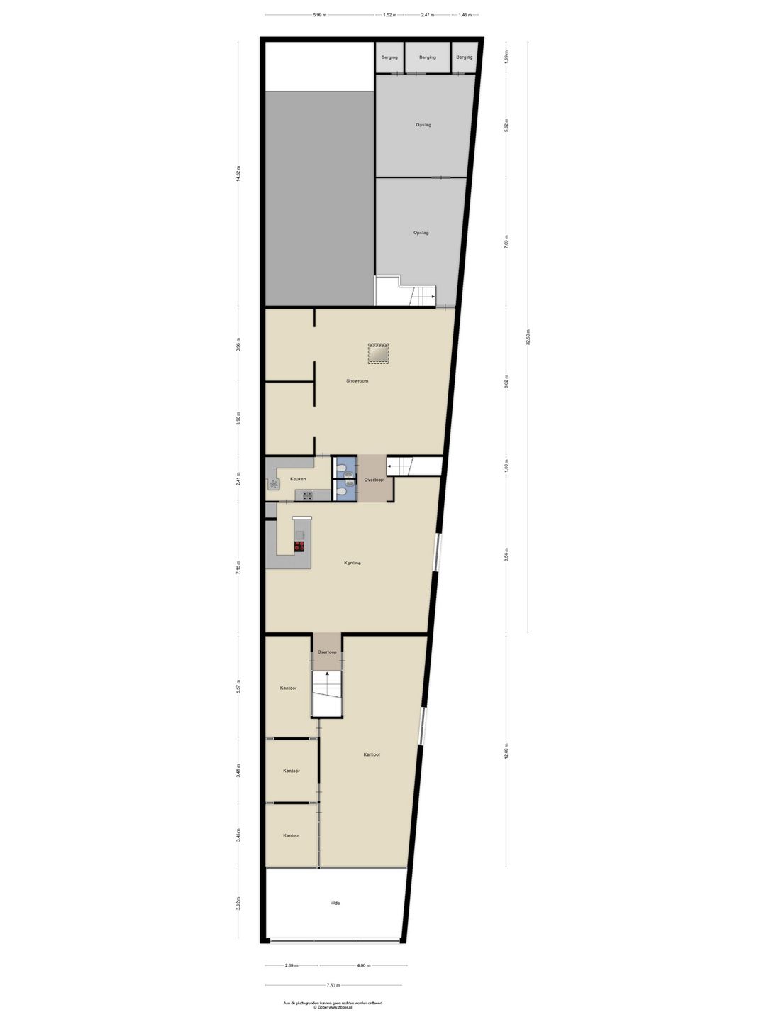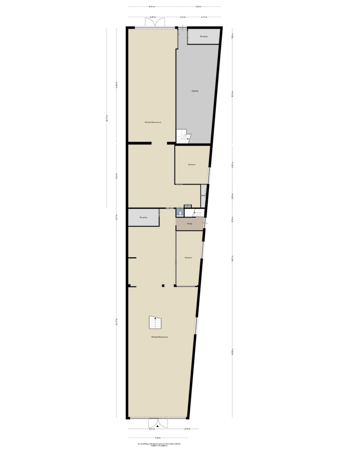 Oppervlakte bedrijfs-/opslagruimte begane grond: circa 66 m²