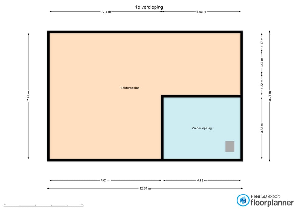 • Verdieping/zolder (ca. 100 m2): bereikbaar via een trektrap (vlizotrap).