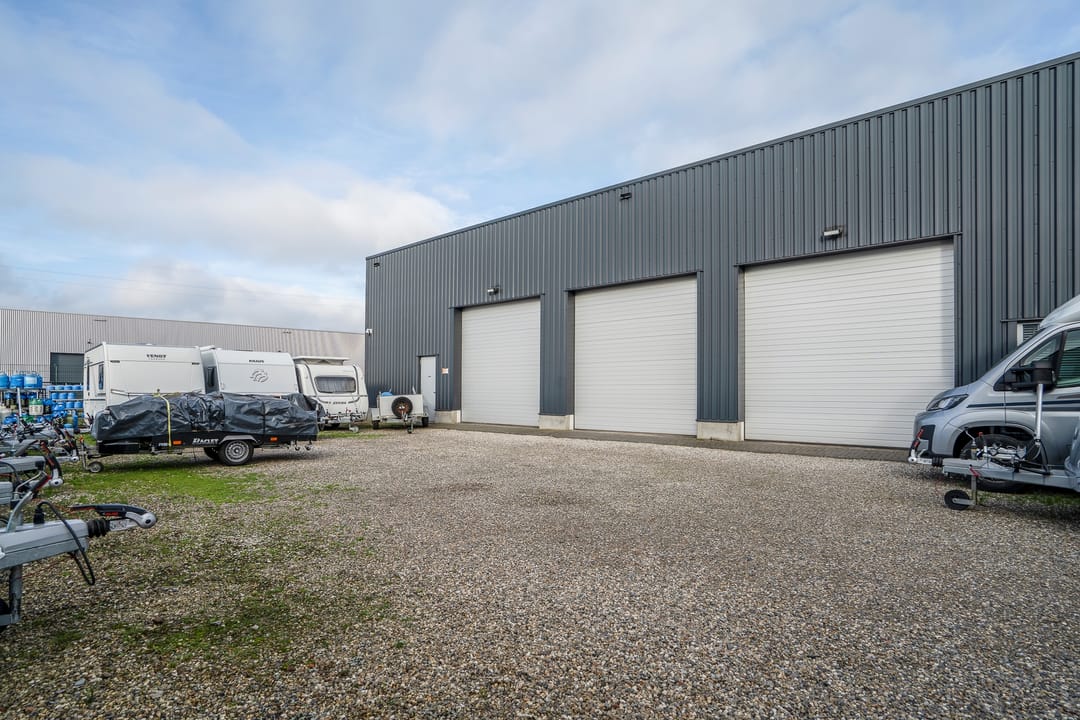 Het betreft een vrijstaand bedrijfscomplex met showrooms, kantoren en werkplaatsen alsmede ondergrond, buitenterrein, erf, en overige onroerende voorzieningen. Op dit moment in gebruik voor verkoop en verhuur van onder andere campers, caravans, kampeertenten met aanverwante artikelen en werkplaats.