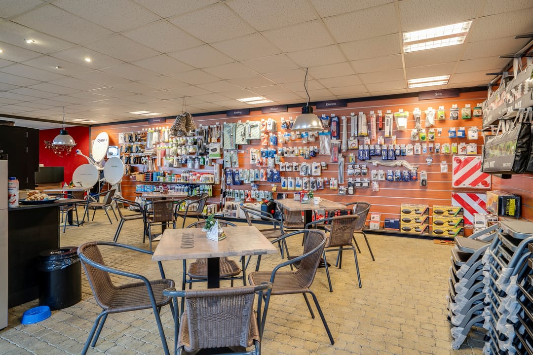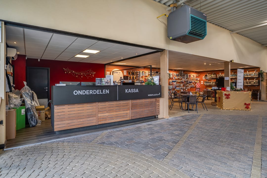 Entree, showroom, receptiebalie, meterkast, pantry, doorloop, kantoorruimte, toiletruimte, balie, kantoorruimte, toiletruimte, werkplaats (met entresol), magazijnruimte, kantine, doorloop, toiletgroep, doucheruimte, met witgoedaansluiting, kantoorruimte,, was- en kleedruimte, technische ruimte, werkplaats met wasplaats en entresol.
