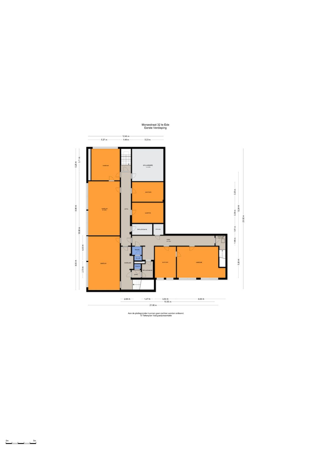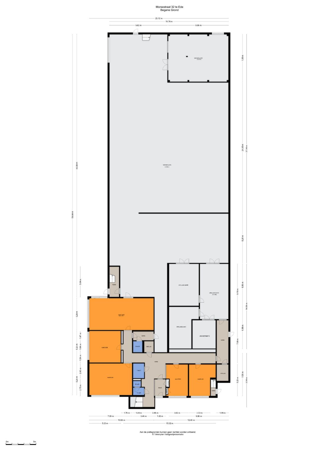 Het betreft een totale oppervlakte van circa 1.558 m² en is als volgt verdeeld: