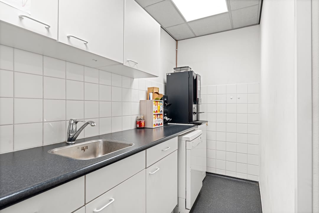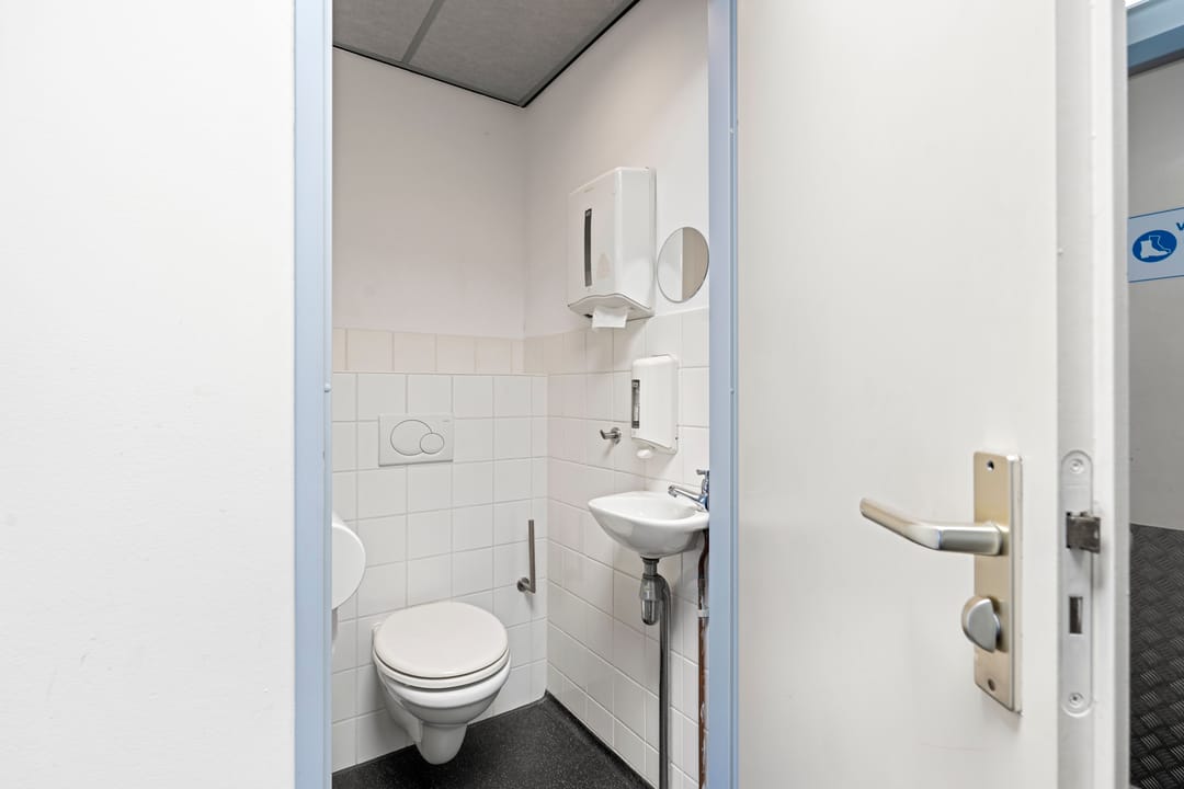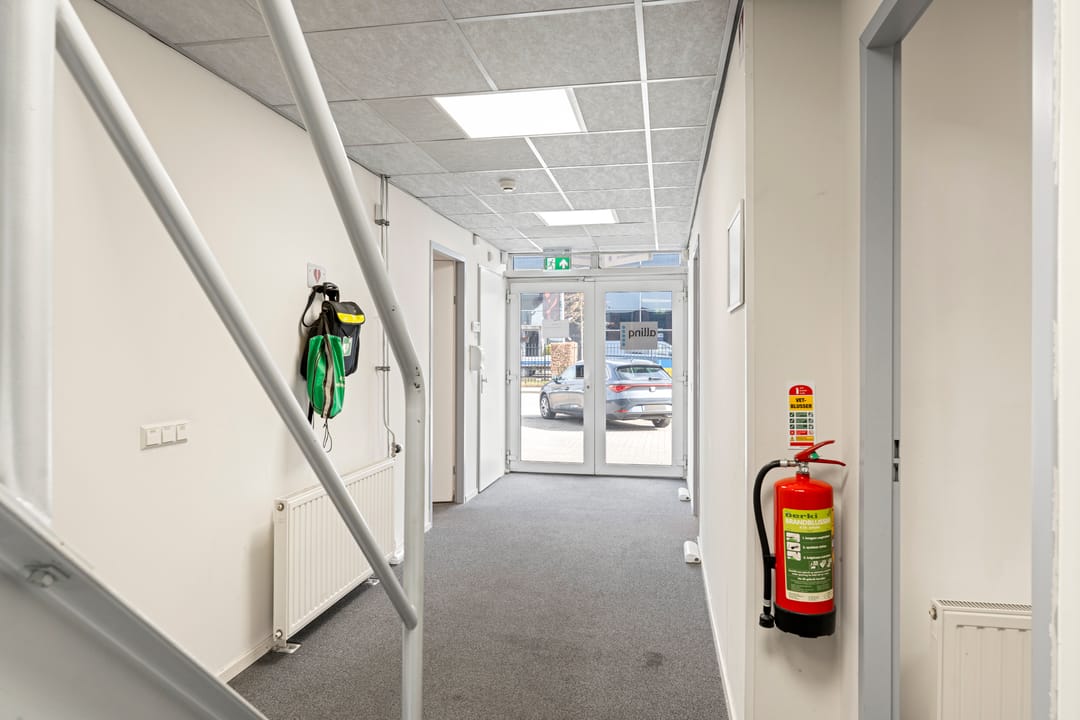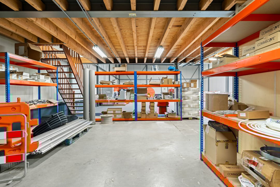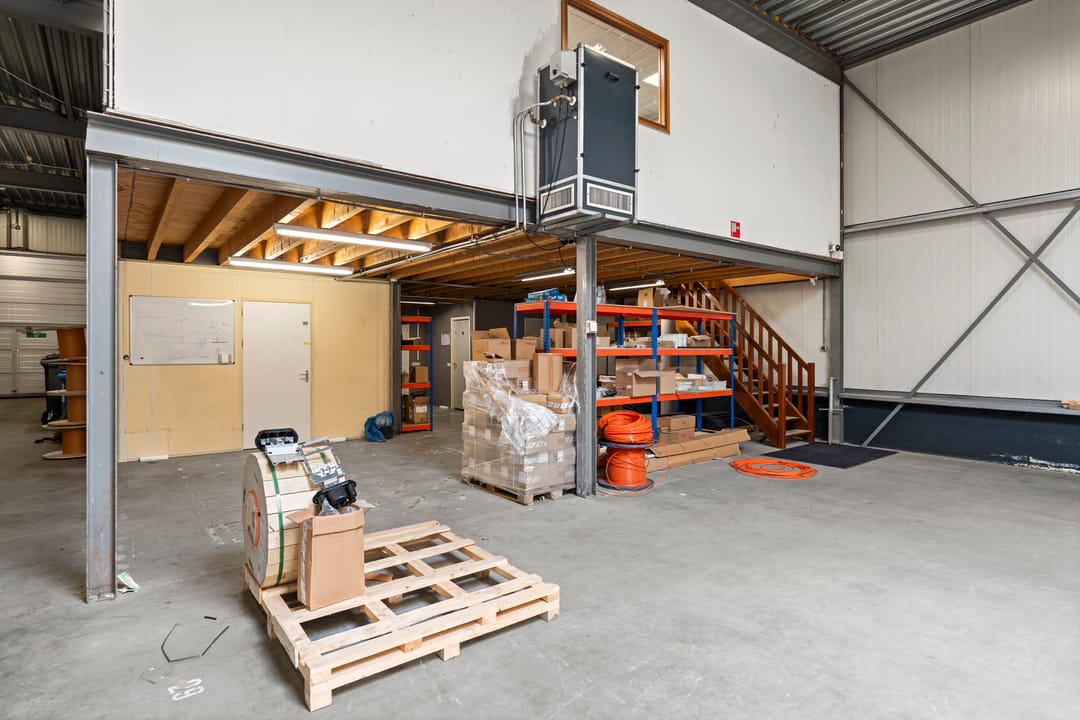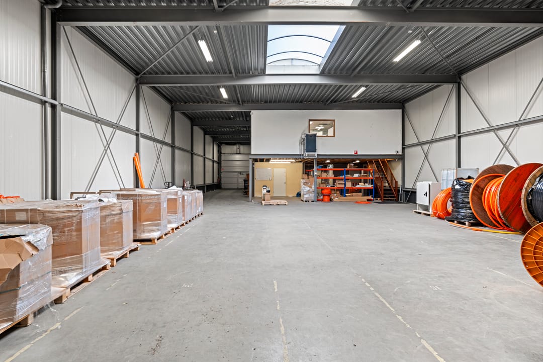 De vrije hoogte van de bedrijfsruimte bedraagt circa 5,2 meter in het hoge gedeelte en circa 2,6 meter in het lagere gedeelte onder de kantoor-/vergaderruimte.