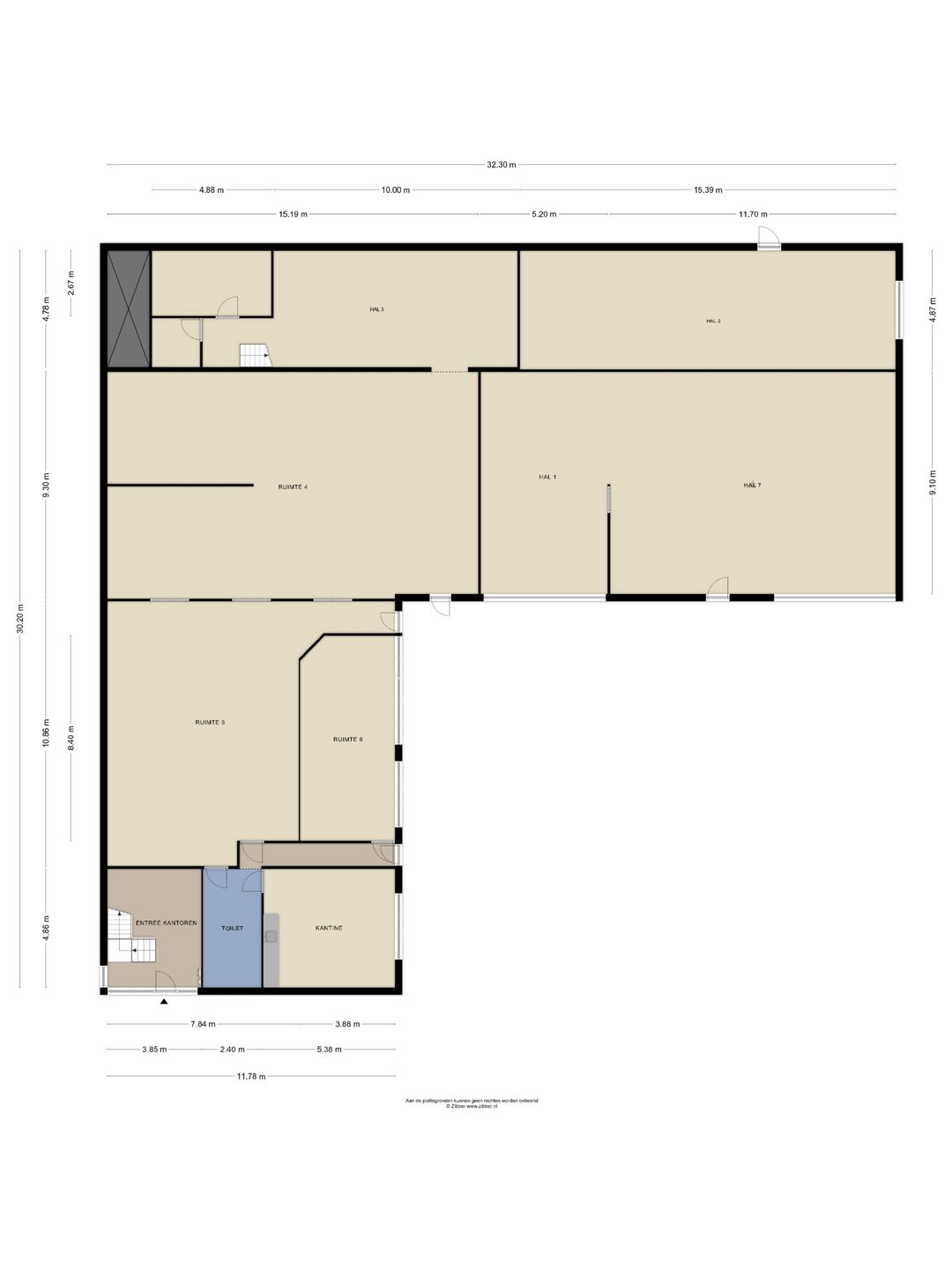 Totaal ca. 604 m2 incl. kantine en toiletten (ca. 35 m2).