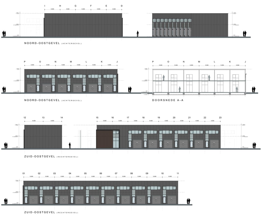 De bedrijfsruimtes zijn standaard voorzien van een elektrische overheaddeur zodat deze ruimten kunnen worden gebruikt
