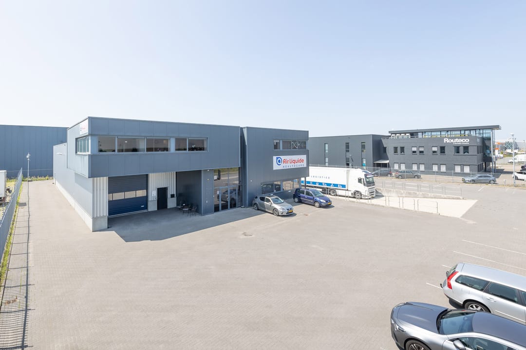 Op het eigen, verharde buitenterrein is ruimte parkeergelegenheid aanwezig. Zowel aan de voor-, achter- als zijkant van het complex kunnen personenauto’s en vrachtwagens worden gestald. Er zijn nu 45 parkeervakken ingetekend voor zowel personen auto’s als vrachtwagens maar er is meer parkeerruimte te realiseren.