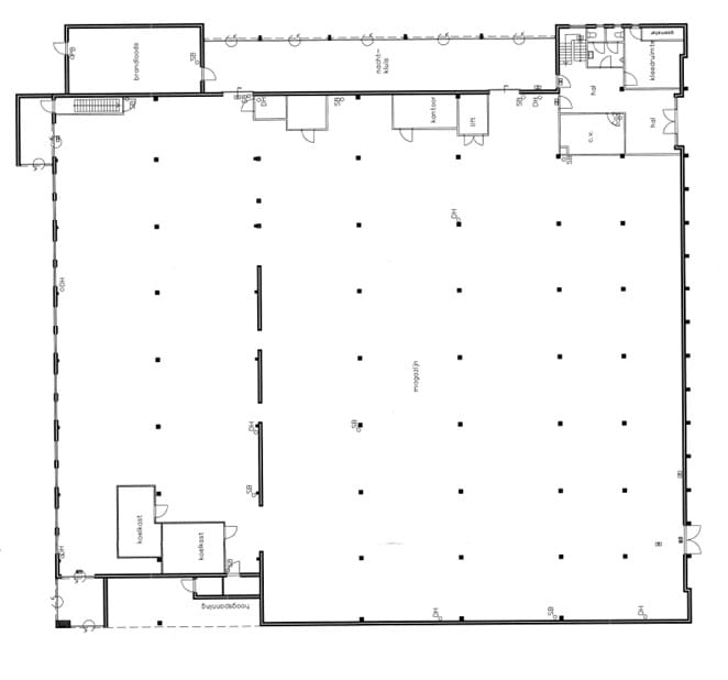 Begane grond Bedrijfs-/opslagruimte met diverse inpandige werkruimten Ca. 1.894 m²