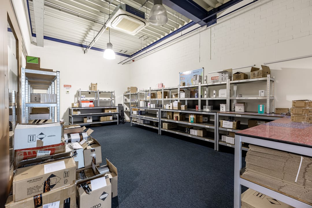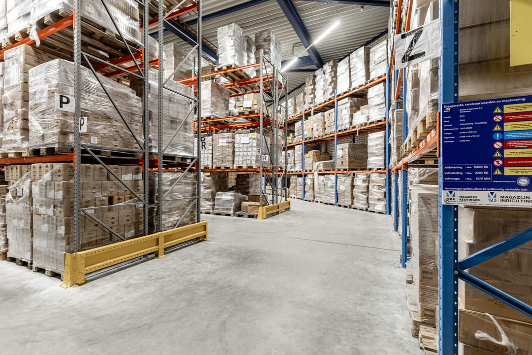 • complete magazijninrichting met stellingen aanwezig (ter overname of te huur);