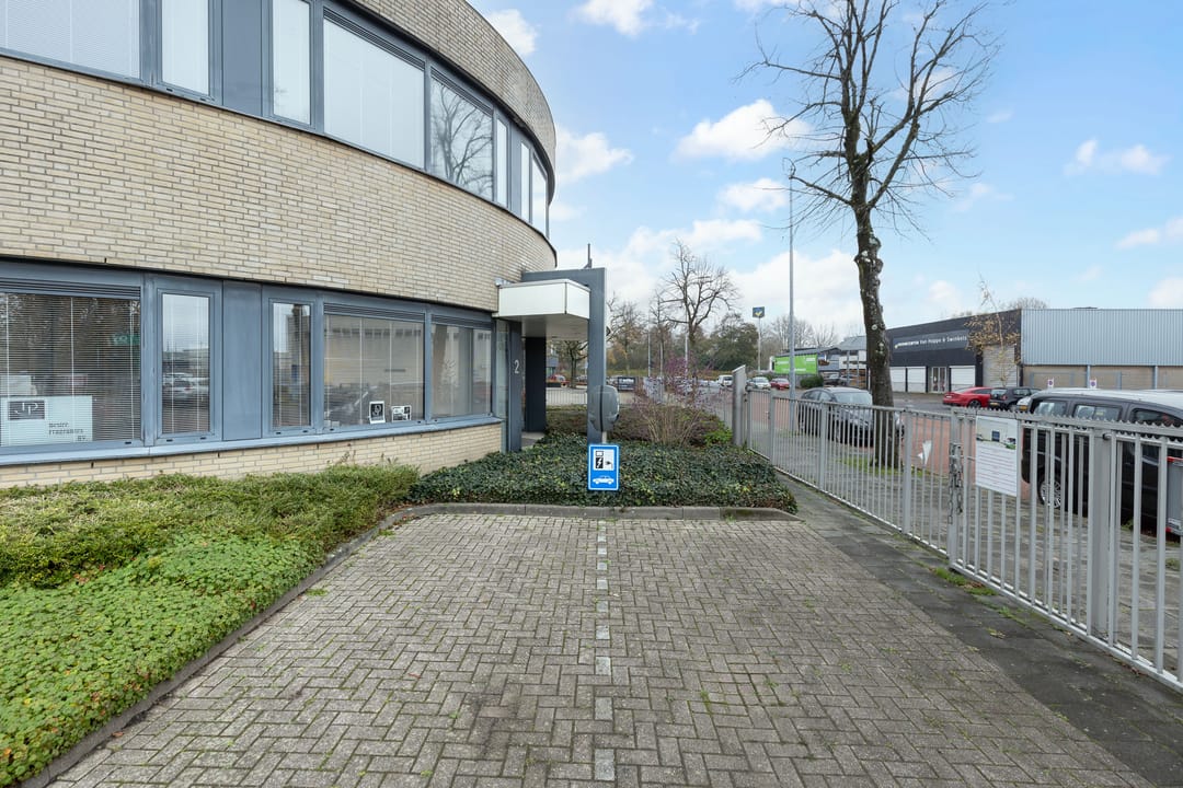 Het betreft een zeer speels, instapklaar rond kantoorgebouw met aansluitend multifunctionele ruimte (kantine/vergaderruimte/atelier), alsmede een hoog magazijn/logistieke opslagruimte en een eigen afgesloten parkeerterrein.