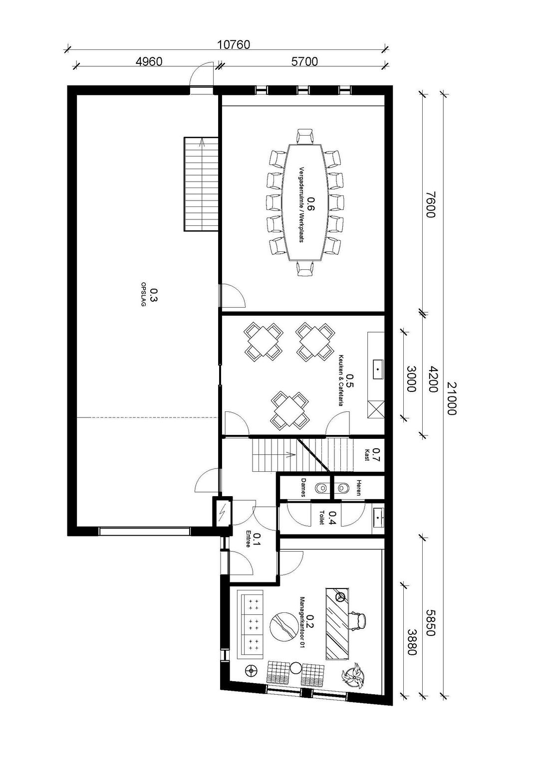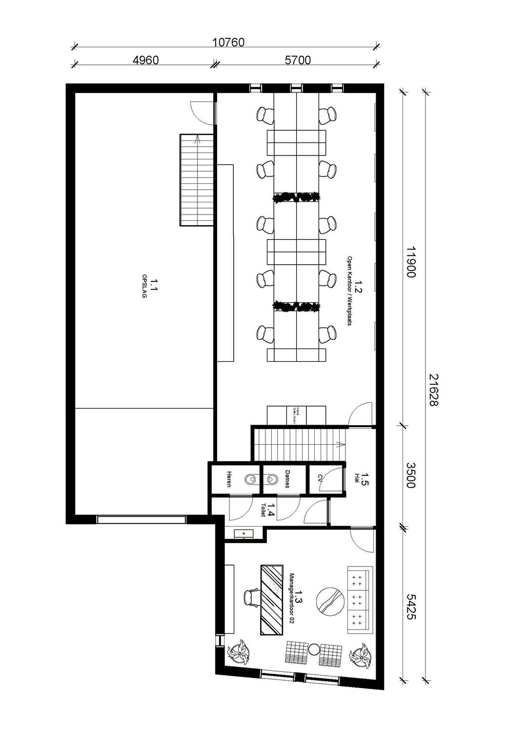 • vrije hoogte van circa 5,5 meter, circa 3 meter onder de entresolvloer, circa 2,6 meter op de entresolvloer
