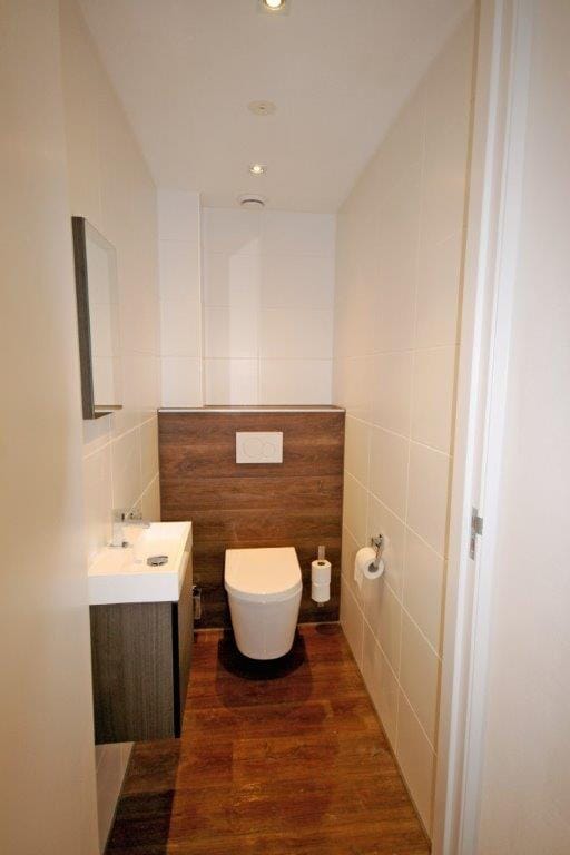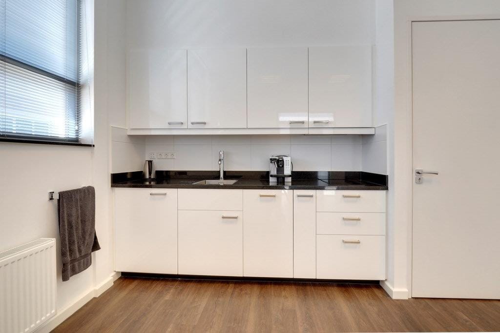 Spreekruimte annex kantine: Energiezuinige verlichting, systeemplafond voorzien van plafond airco unit, hoogglans keuken met inbouw apparatuur; koelkast met vriesvak, vaatwasser, elektrische kookplaat, afzuigkap, akoestisch gedempte vloertegels (houtlook), verwarming via CV radiatoren.