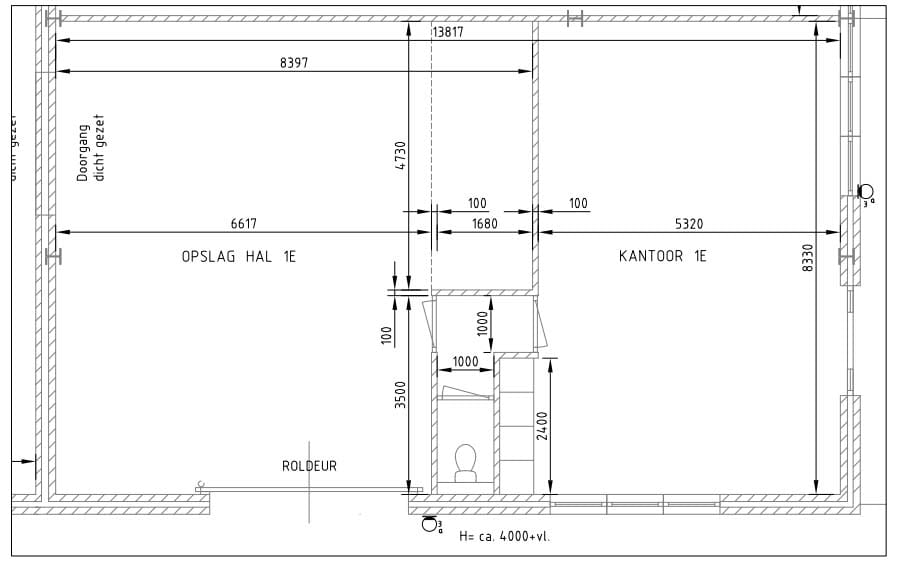 Oppervlakte: Totaal ca.140 m2 waarvan ca. 70 m2 opslagruimte met een entresol van ca. 14 m2, een kantoorruimte van 24 m2 en een spreekruimte annex kantine voorzien van keukenblok van ca. 30 m2 en een toiletruimte met fontein.