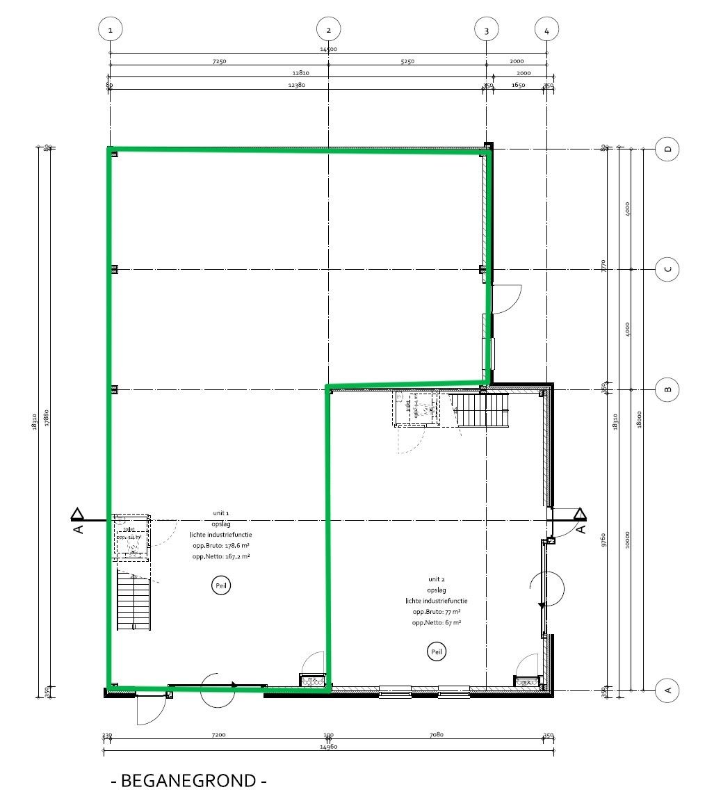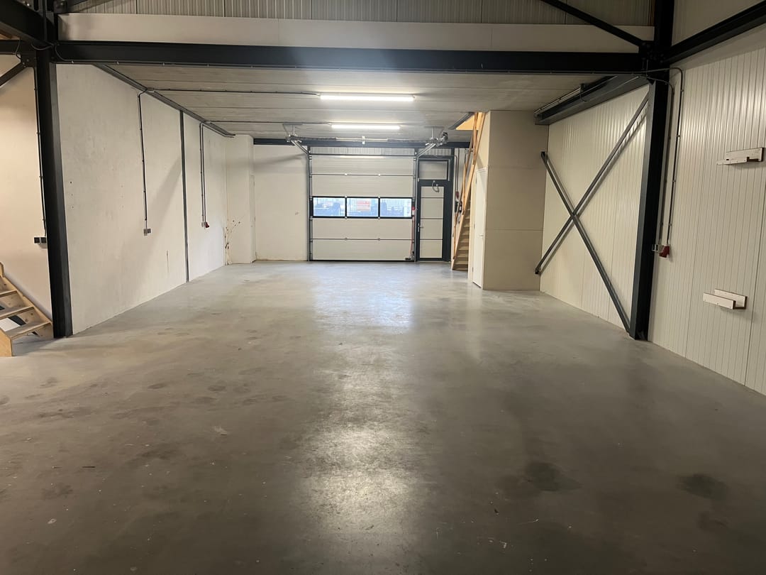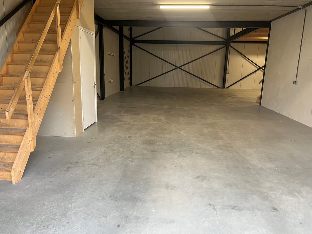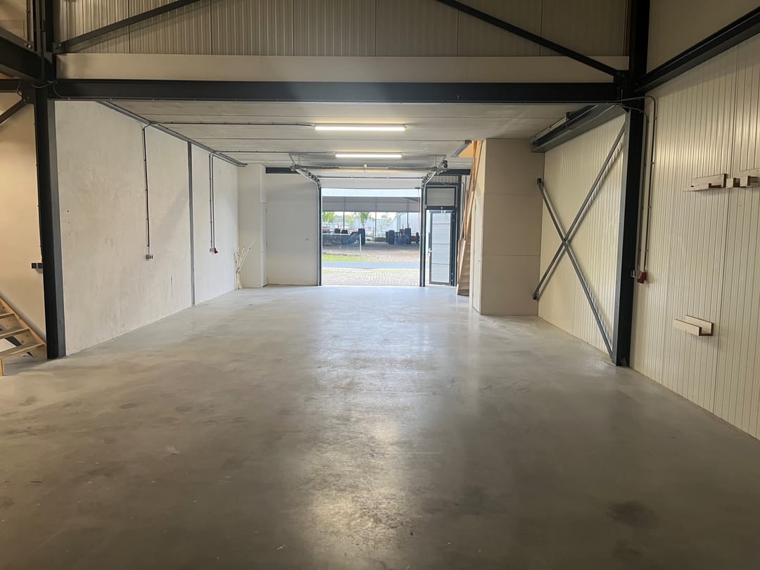• Voorzien van een elektrische overheaddeur (3 x 3 meter) en een aparte loopdeur.