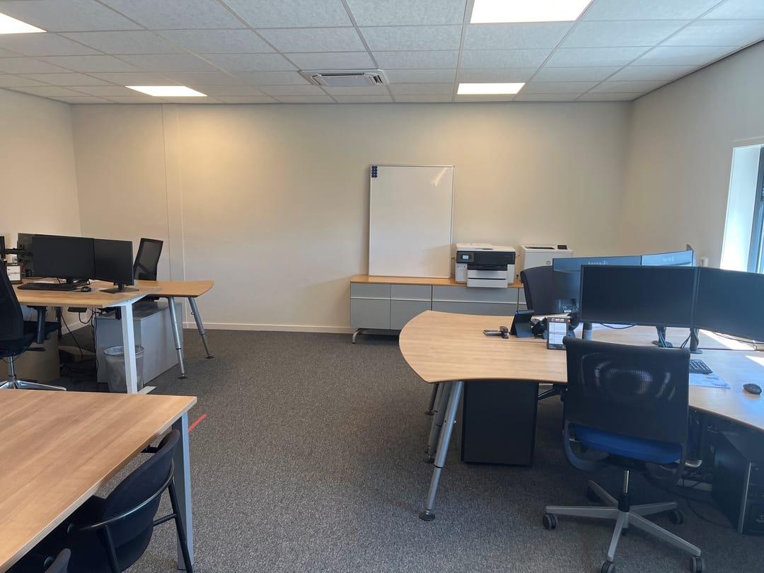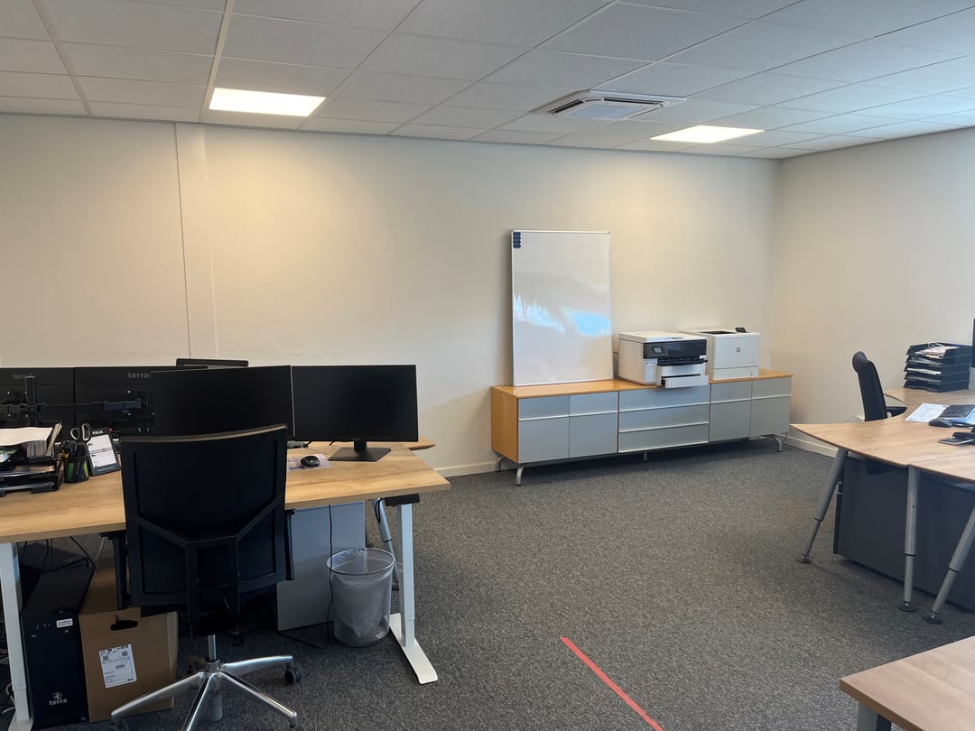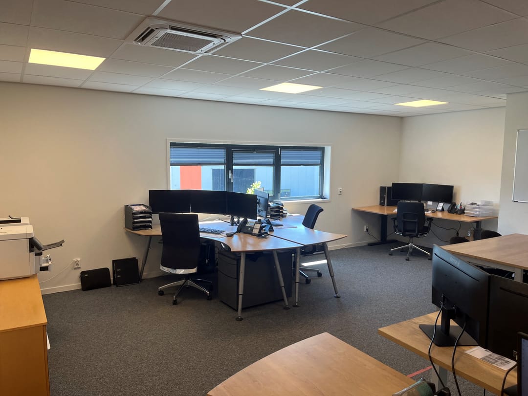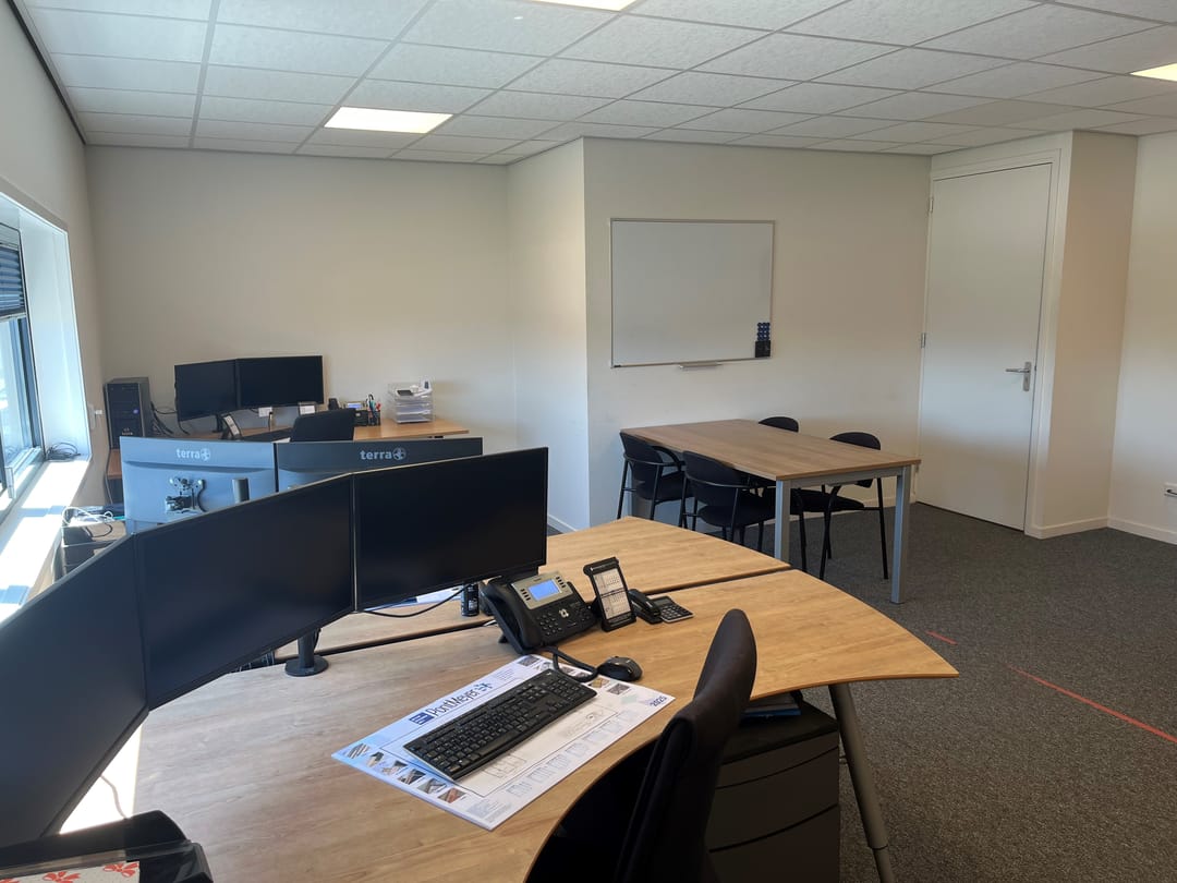 • Kantoorruimte: diverse raampartijen (aluminium met HR++ glas), systeemplafond met ledverlichting, airco (koelen en verwarmen).