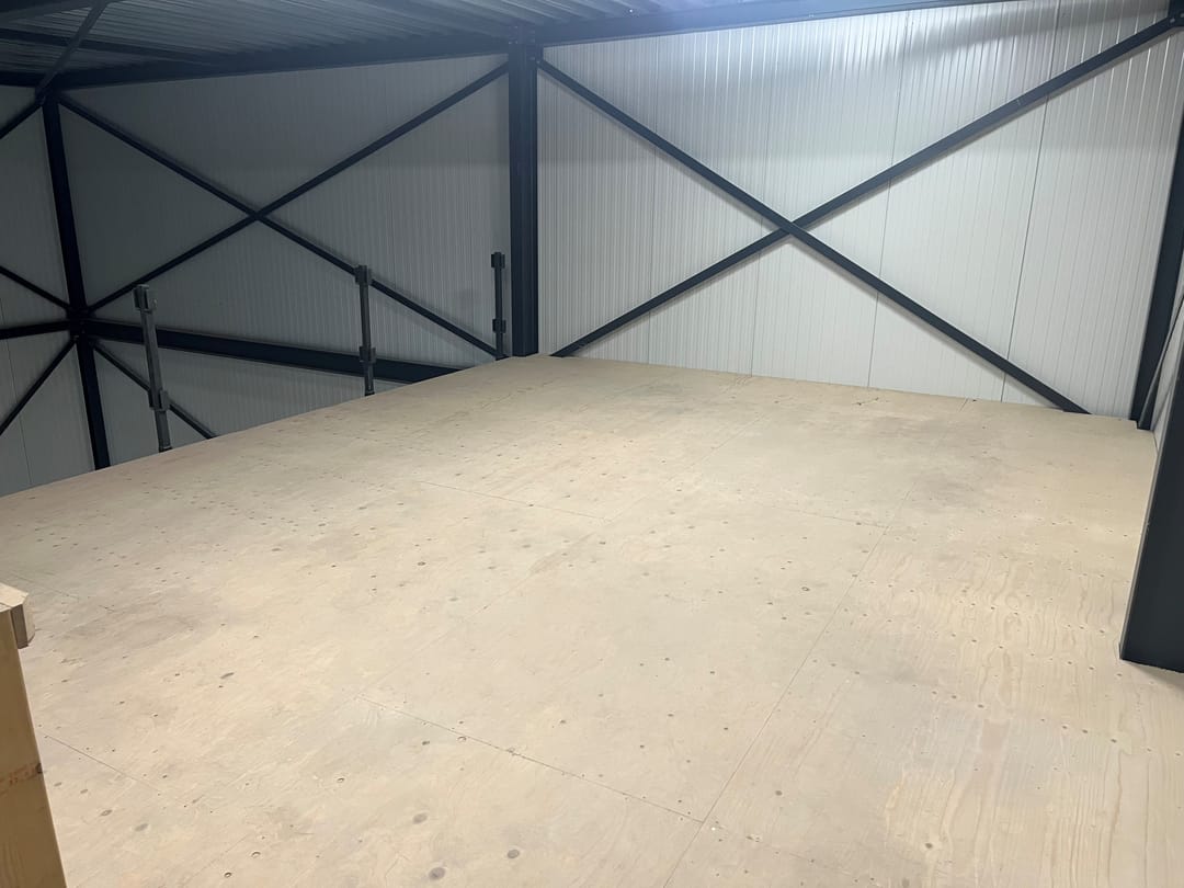 - Overhead doors, three-phase electric power, concrete floor and toilet
