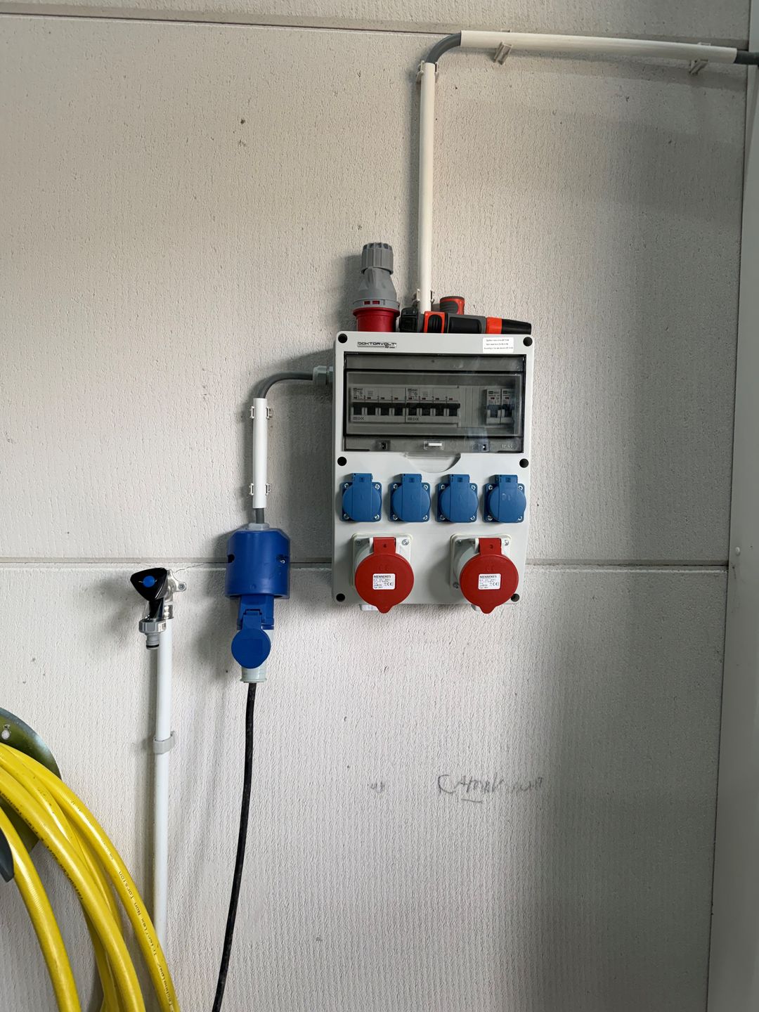 • Meterkast met krachtstroom (3x 25 A) en meerdere elektrapunten