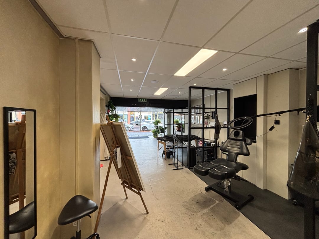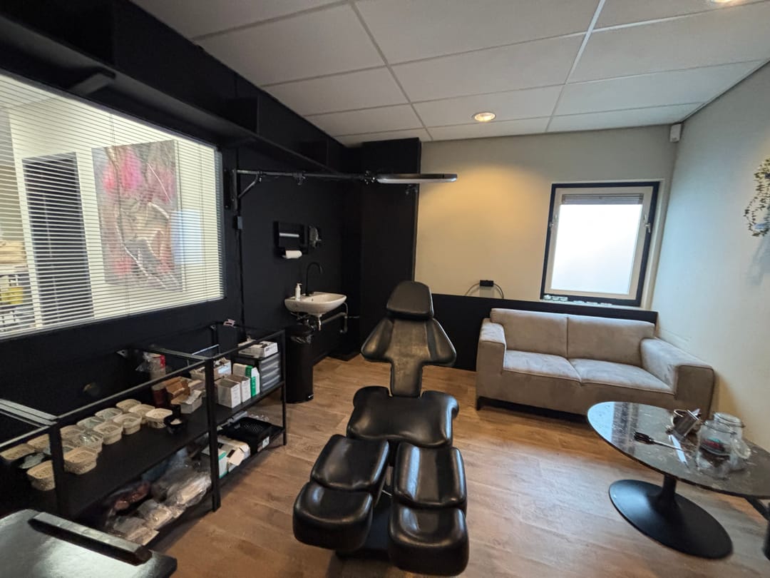 De winkelruimte is voorzien van meerdere behandelruimtes, een kantine, kantoor en toiletruimte, met een oppervlakte van circa 225 m². Aan de achterzijde bevindt zich een opslagruimte van circa 40 m², voorzien van een overheaddeur. Klanten kunnen goed parkeren aan de voorzijde, terwijl aan de achterzijde een eigen inrit en circa vijf parkeerplaatsen aanwezig zijn.