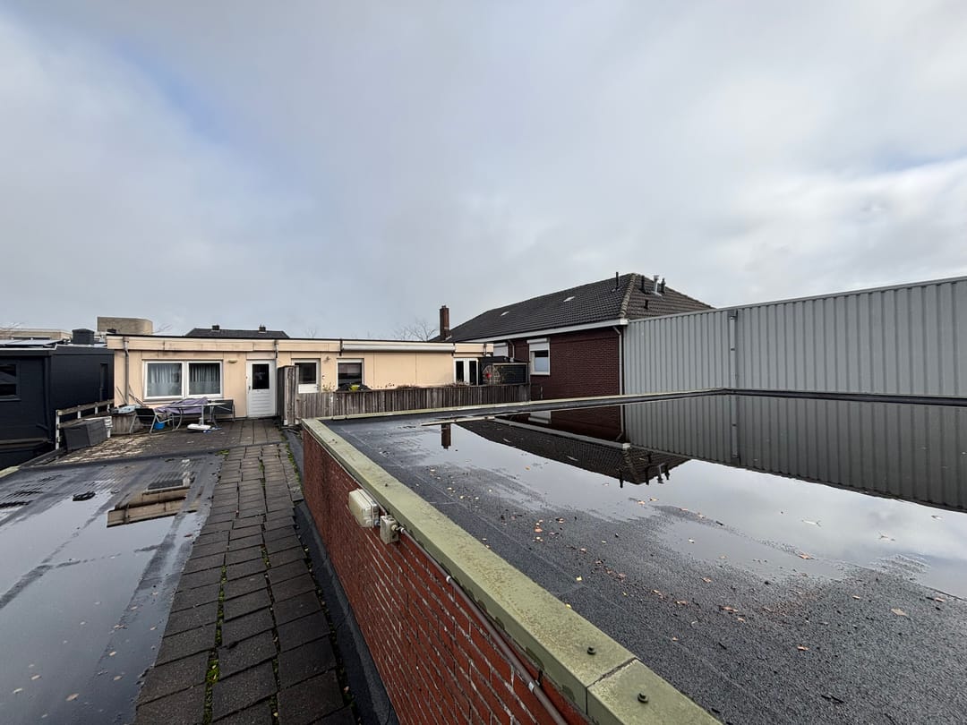 De ruime bovenwoning (circa 115 m²) is bereikbaar via een open trap aan de achterzijde. De woning beschikt over een berging, keuken, ruime woonkamer, twee slaapkamers, douche en toiletruimte, een ruimte voor wasmachine en droger en een ruim dakterras.
