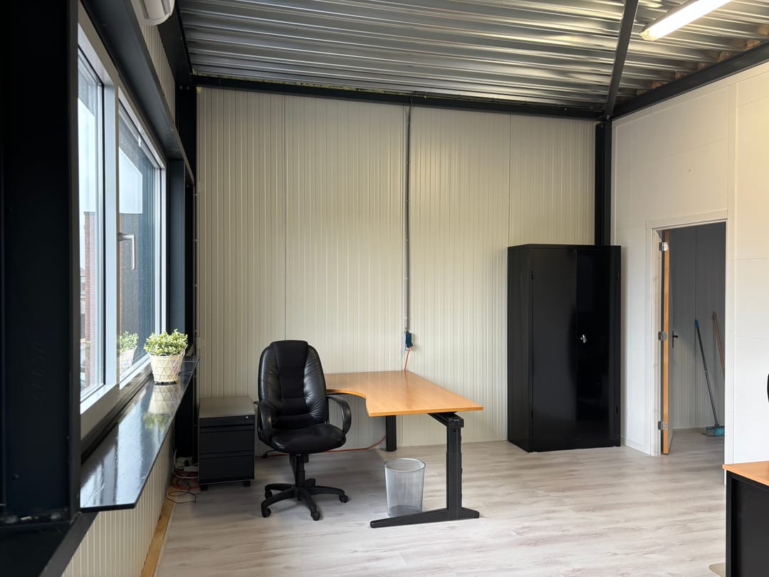De bedrijfsunit is voorzien van een overheaddeur, met een hoogte van 3,5 meter, op de begane grond in combinatie met een kantoorruimte op de eerste verdieping.