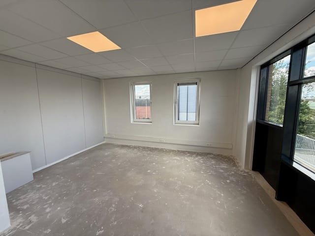 – Kantoorwanden zijn afgewerkt en gereed voor schilder- of behangwerk;