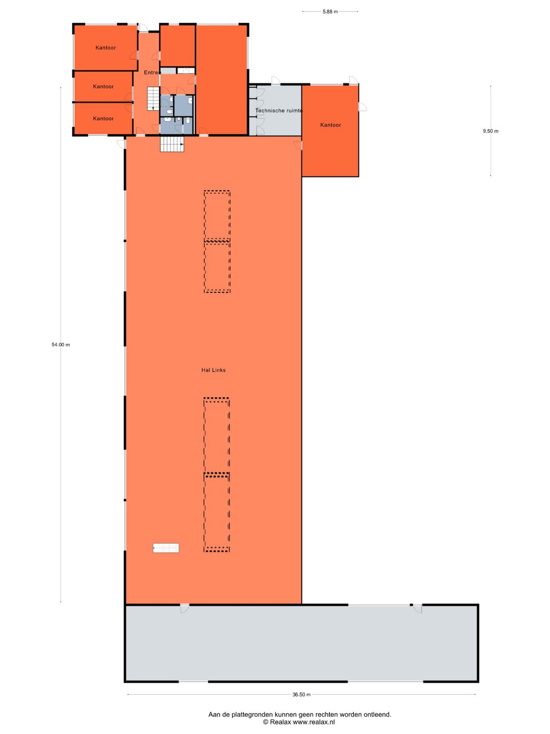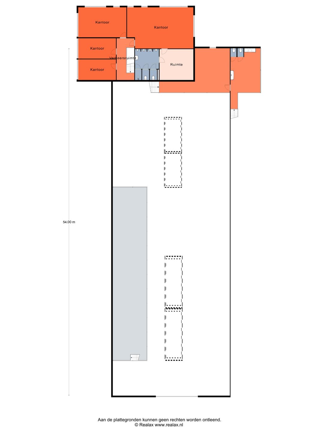 De oppervlakten zijn gemeten door verhurend makelaar uit een kopie bouwtekening. Het opgegeven metrage is derhalve indicatief; er kunnen geen rechten aan worden ontleend noch kan er sprake zijn van enige verrekening achteraf.