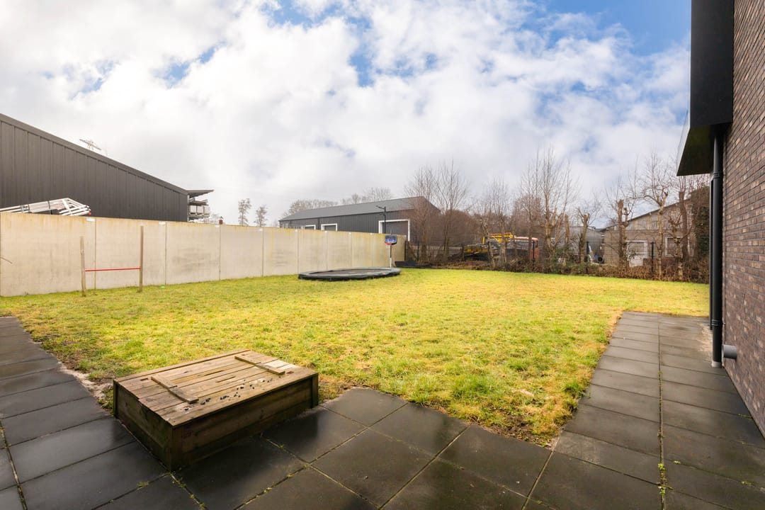 Achter en naast de woning is er een verrassend grote tuin aangelegd. Hier kan je heerlijk van de zon genieten. Naast de woning, aan de tuinzijde, is er nog een betegeld terras gedeelte aanwezig.