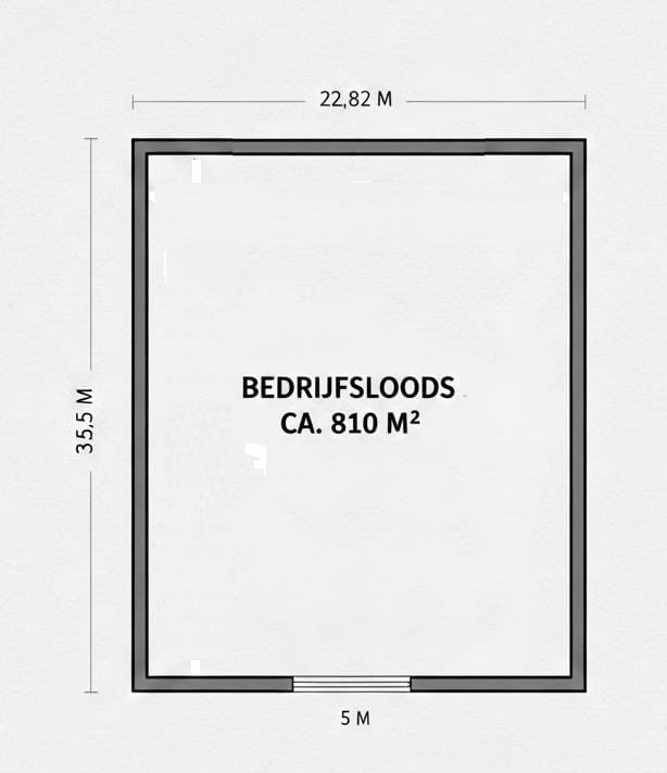 De bedrijfsloods heeft een royale afmeting van circa 35,5 meter lang en 22,82 meter breed en biedt daarmee volop praktische en flexibel inzetbare ruimte van ca. 810 m². De maximale hoogte in de nok bedraagt 6,20 meter, wat zorgt voor een prettige werkhoogte en goede mogelijkheden voor opslag.