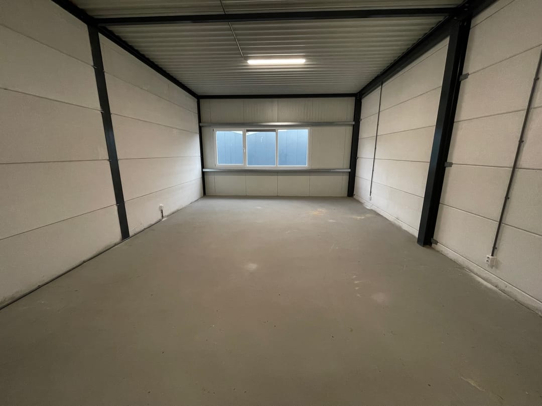 Deze bedrijfsunit bestaat uit een bedrijfsruimte op de begane grond van 15 meter diep en ca. 5.50 meter breed en een showroom/kantoorruimte op de betonnen verdiepingsvloer. De begane grond is voorzien van een elektrische overheaddeur en een loopdeur.