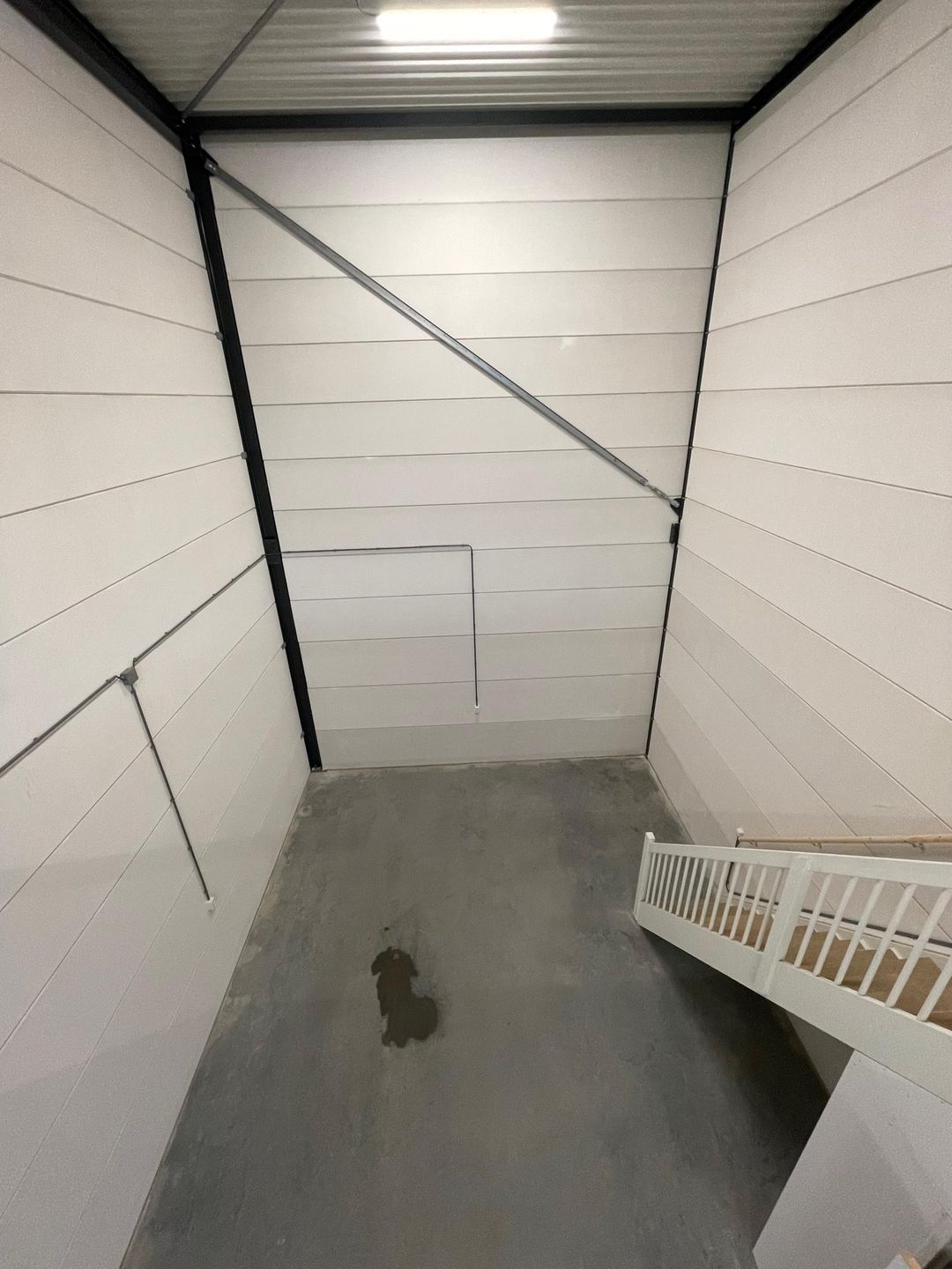 - vrije hoogte op de begane grond ca 3,50 meter onder de betonnen verdiepingsvloer en ca. 7,50 meter onder de staalconstructie van het staaldak.