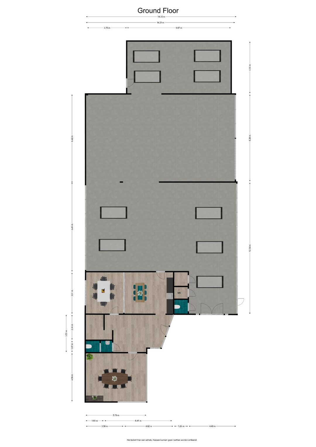 Deze informatie alsmede de inhoud van eventuele bijlagen is zorgvuldig samengesteld. Desondanks wordt onzerzijds geen aansprakelijkheid aanvaard ten aanzien van onvolledigheid en/of onjuistheid, dan wel de gevolgen daarvan. De vermelde informatie is een uitnodiging om in onderhandeling te treden en mag niet als grondslag voor een overeenkomst worden beschouwd. De kennisgeving van deze informatie alsmede een eventuele huurovereenkomst is onder voorbehoud definitieve goedkeuring opdrachtgever. Opdrachtgever heeft het recht de verhuurprocedure naar eigen goeddunken, zonder kennisgeving, te veranderen en heeft tevens het recht om te allen tijde met één of meer gegadigden te onderhandelen en/of zonder opgaaf van reden zich terug te trekken, welke niet zal leiden tot enige aanspraak en/of vergoeding. Overname, plaatsing op internetsites, verveelvoudiging op welke andere wijze dan ook van deze inhoud is niet toegestaan. Alle maten en oppervlakten zijn indicatief. Prijs-/druk-/zetfouten en wijzigingen voorbehouden.