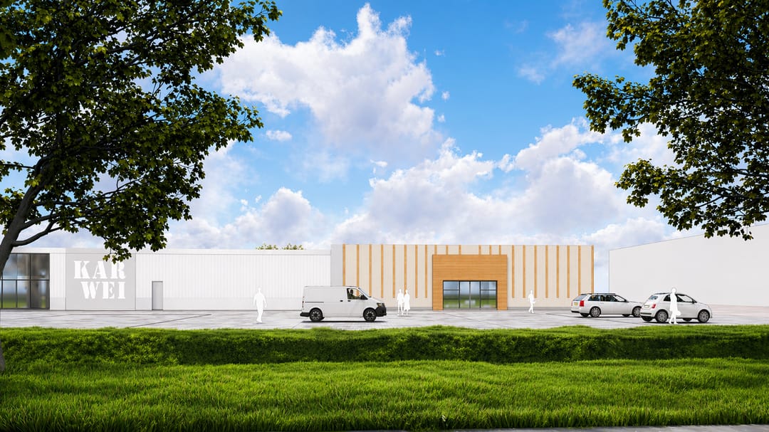 Aan de Edisonstraat 18 in Franeker wordt een bedrijfspand gerealiseerd, direct naar de Karwei bouwmarkt.