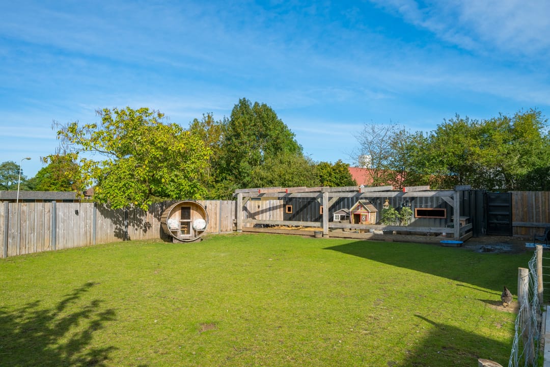 Speel/paardenweide met dierenverblijf.